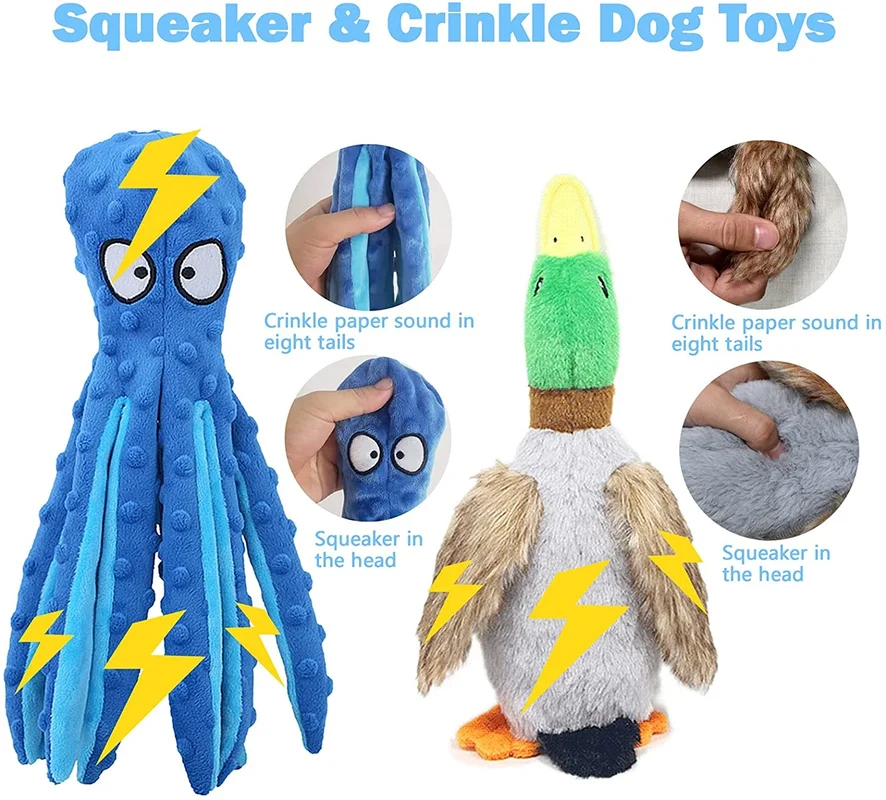 Пищащие игрушки для собак:Эта плюшевая игрушка для собак имеет пищалку в голове и мерцающую бумагу в Хвостах. Это немедленно привлечет внимание вашей собаки.