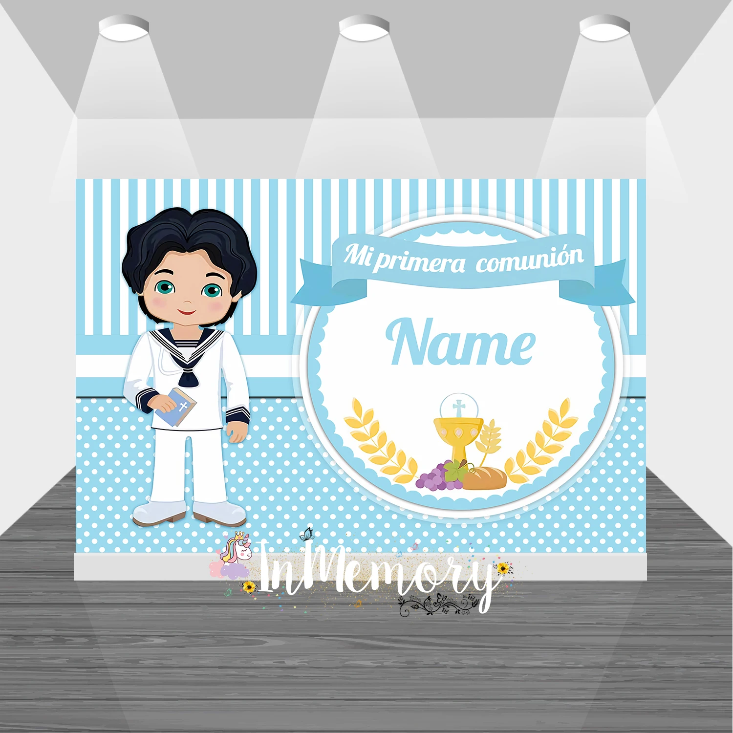 Виниловый фон для вечерние съемки с изображением имени первого святого причастия в горошек для мальчиков и девочек
