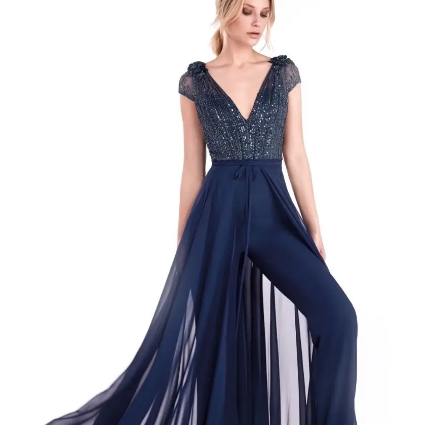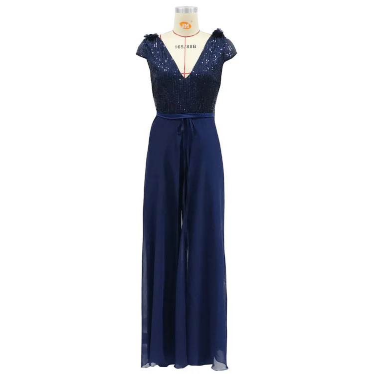 Женский вечерний комбинезон с рукавами, элегантное платье темно-син...