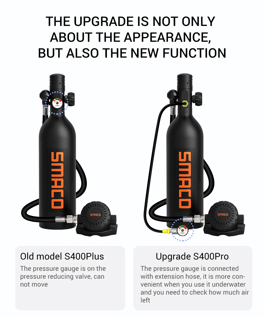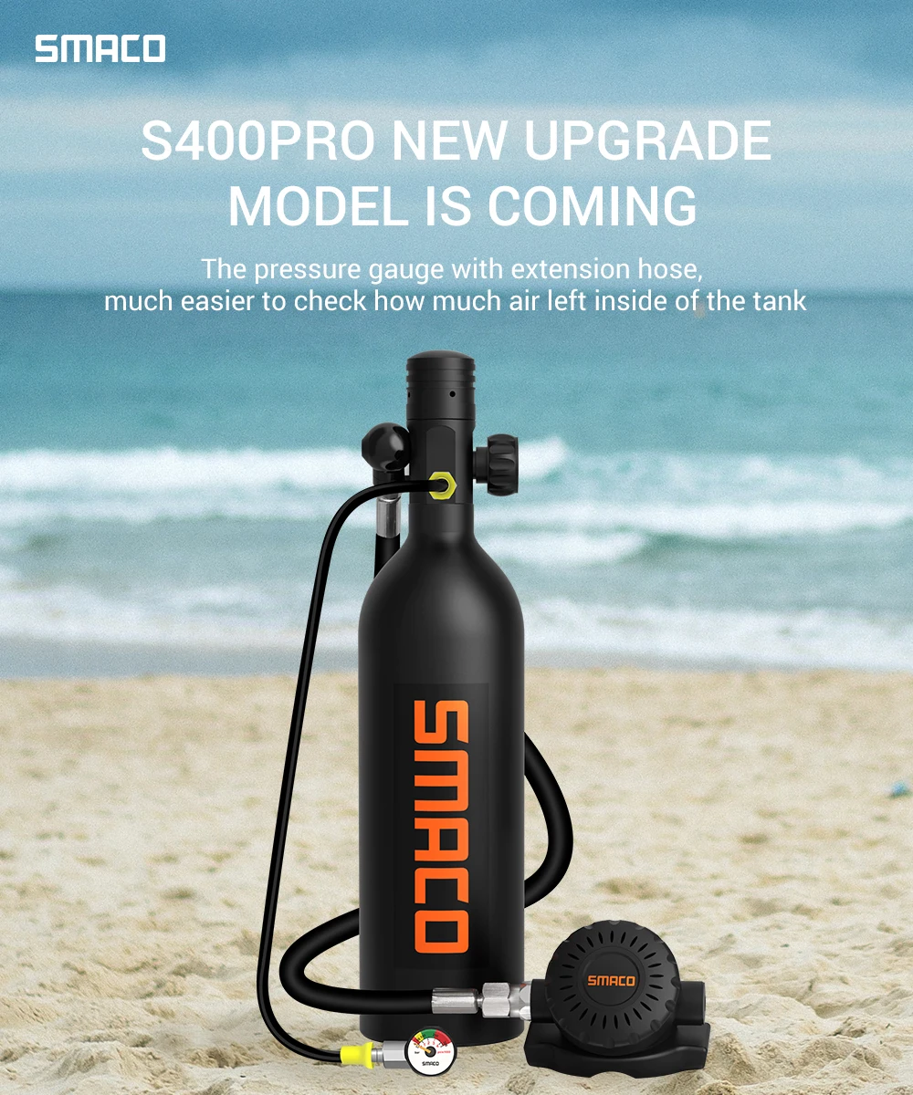 Цилиндр для дайвинга SMACO S400Pro, портативный респиратор с ручным насосом для погружения с аквалангом, 1 л