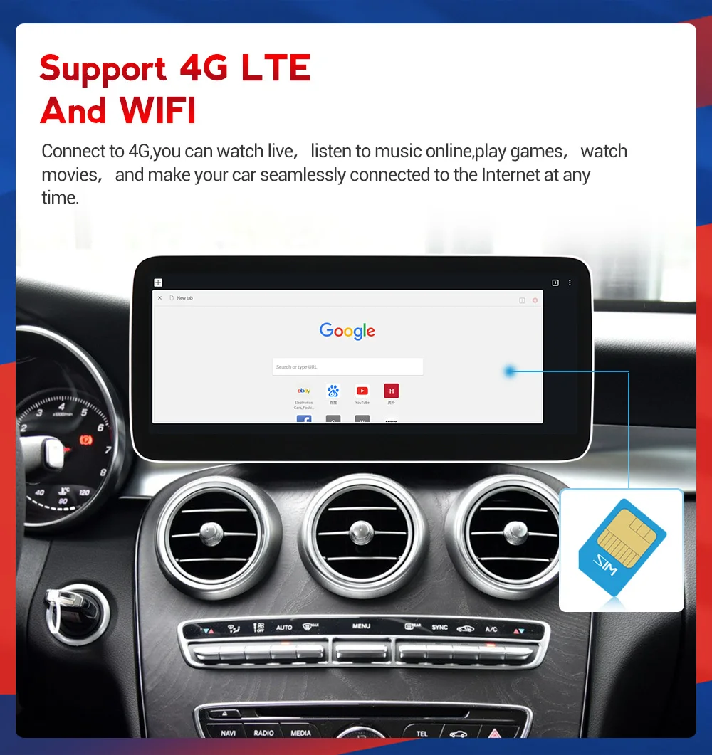 Android 10 Carplay 8 ГБ ОЗУ 128 Гб ПЗУ 4G LTE WIFI для benz C-Class...