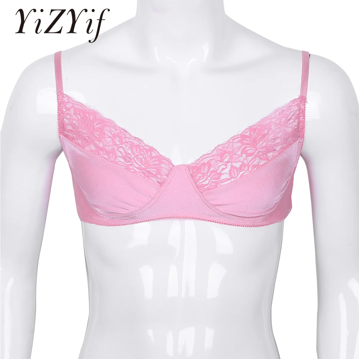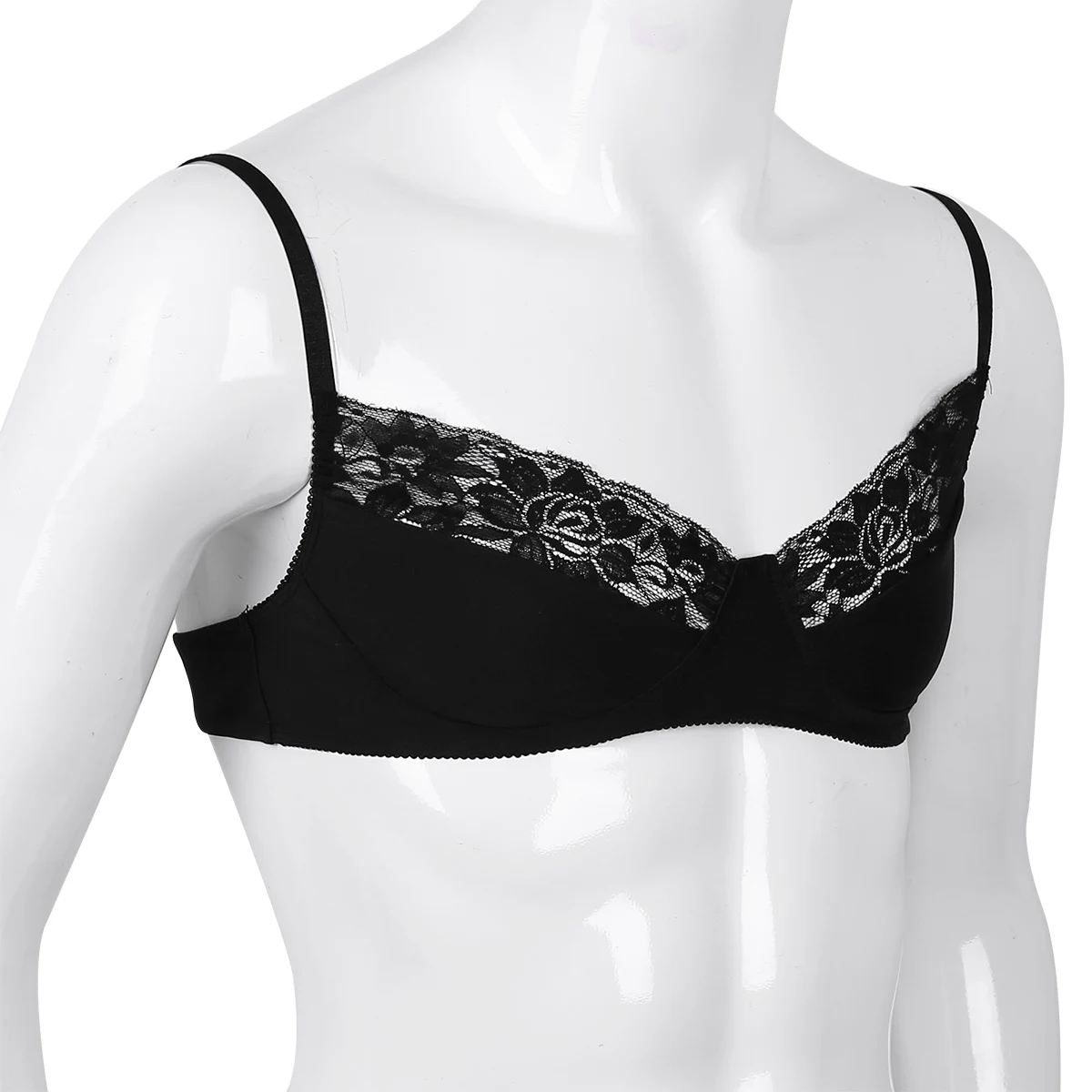 # M-XXL Мужское нижнее белье Sissy Bralette гладкая ткань и кружевной бюстгальтер без косточек топ с регулируемыми бретелями