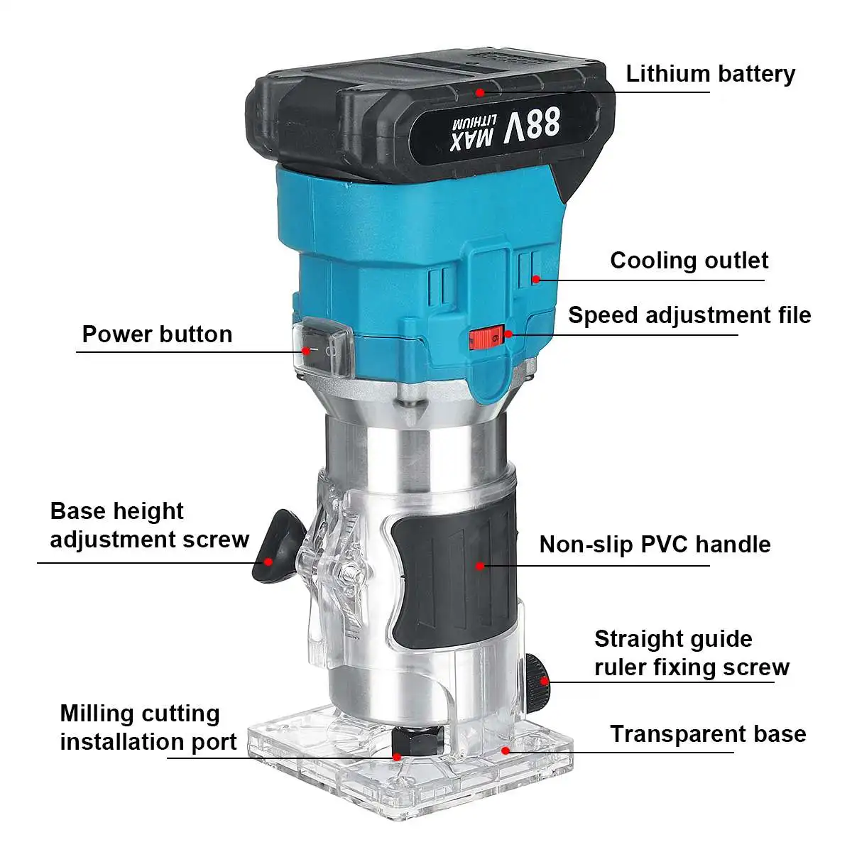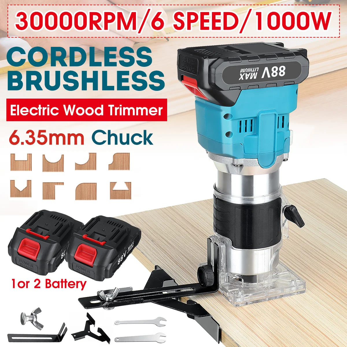 88V 30000 обмин 6 скоростей электрический триммер бесщеточная аккумуляторная Перезаряжаемые быстроходный деревообрабатывающий фрезерный станок ручной фрезерный станок для Makita 18V Батарея