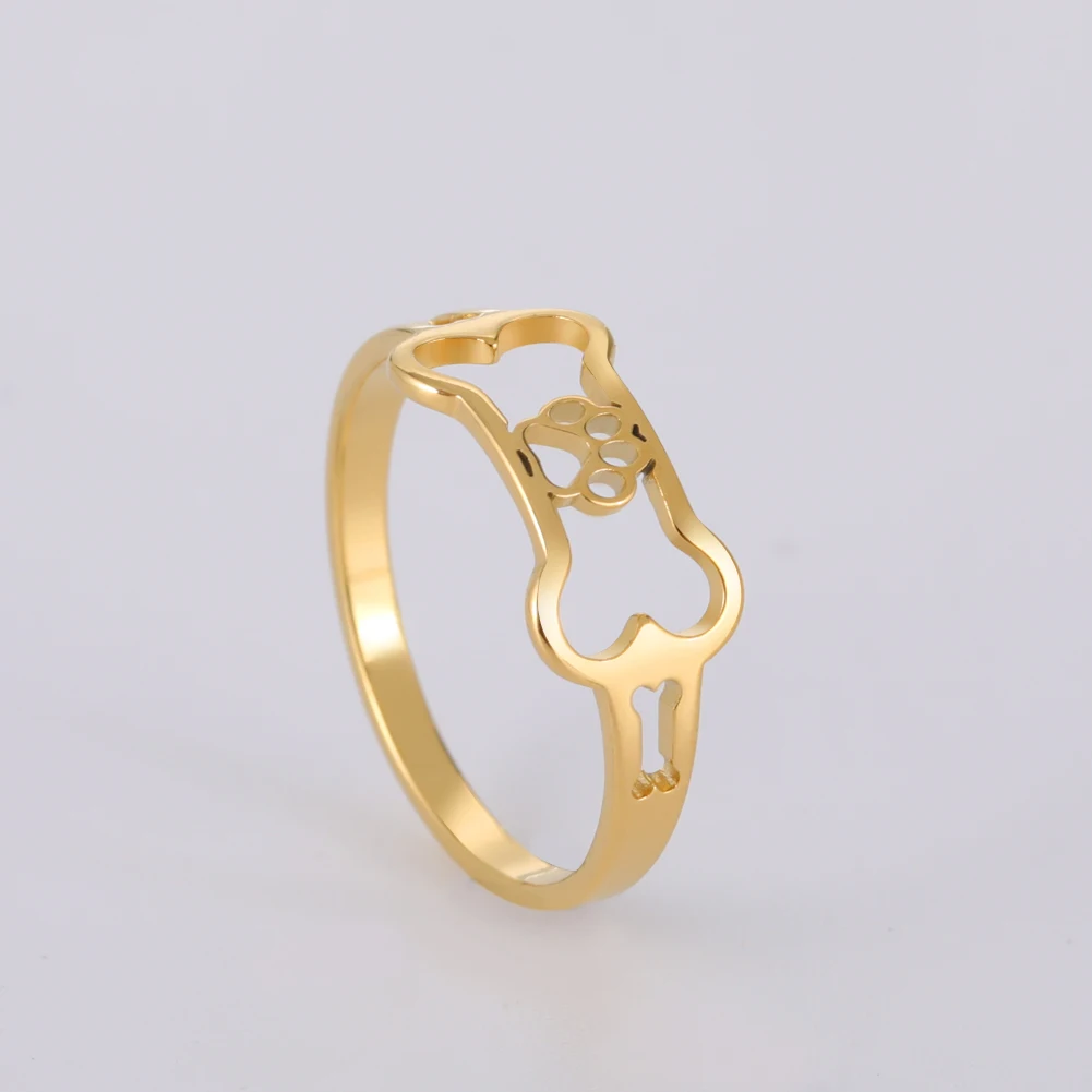 COOLTIME Dog Pawprint кольцо для женщин щенок кость милое кольцо для девочек нержавеющая сталь Золотой Цвет Ювелирные изделия Подарки для женщин 2022 оптовая продажа