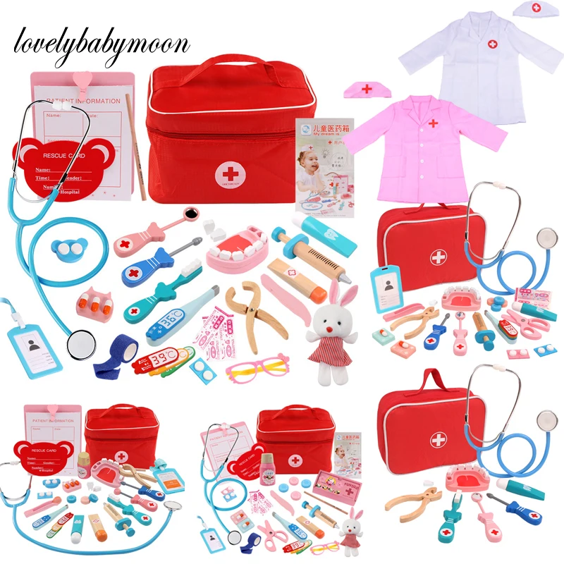Деревянная игрушка для ролевых игр, стоматологический врач, обучающие игрушки для детей, медицинская имитация, набор медицинских сундуков, одежда для врачей для детей