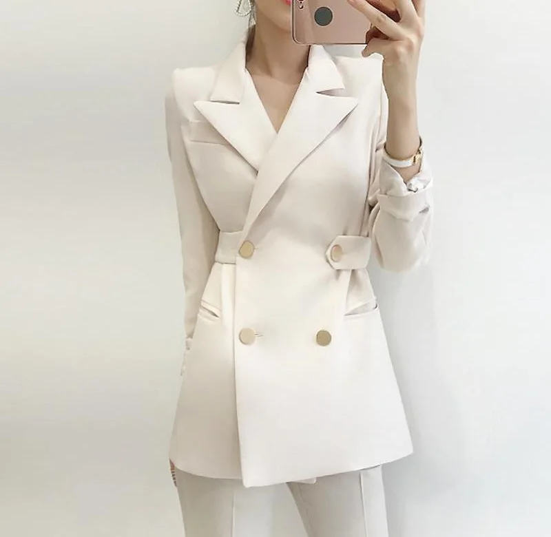 Пиджак женский двубортный, офисный белый пиджак в Корейском стиле, черный, верхняя одежда, весна-осень 2021