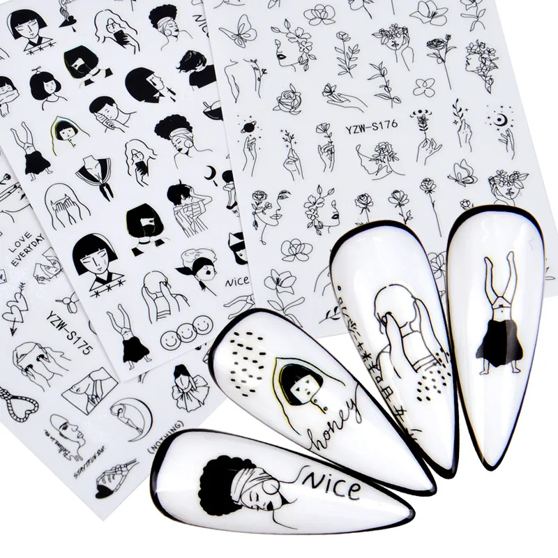 Фольга 3D для маникюра, наклейки для ногтей с геометрическим рисунком лица, для дизайна ногтей, реквизит и инструменты