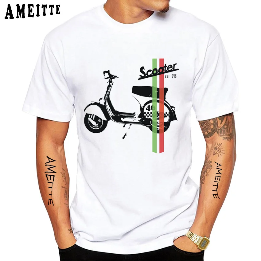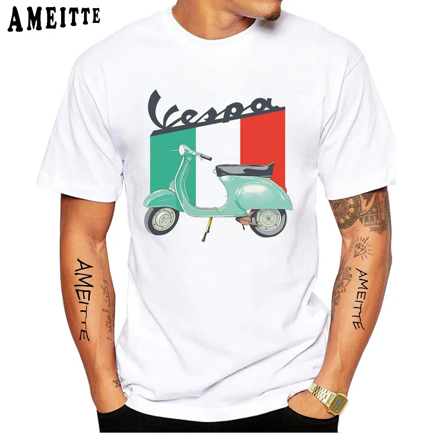 Классическая Ретро футболка Vespa Mod для скутера, новая летняя мужская Винтажная футболка с коротким рукавом в стиле хип-хоп для мальчиков