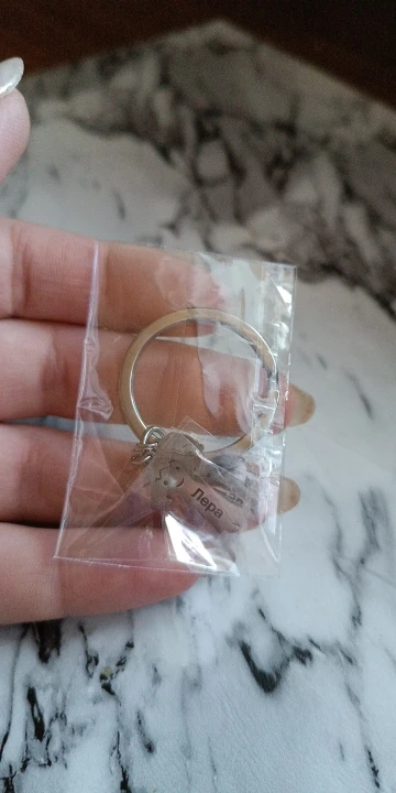 очень классный брелок,продавец быстро отвечает на вопросы,и быстро послал посылку,надписи и фигурки ровные , чёткие,люблю такие вещи,подарок подруге,жаль не льзя поставить 100 звёзд) продавца рекомендую, спасибо вам большое)))