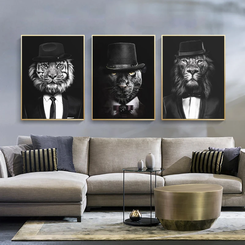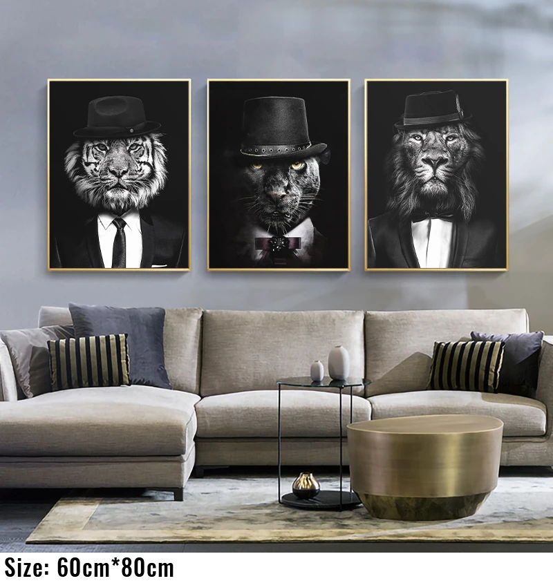 Абстрактная черно-белая животная, холст, живопись, тигр, Лев, плакаты и принты, Настенная картина для гостиной, украшение для дома