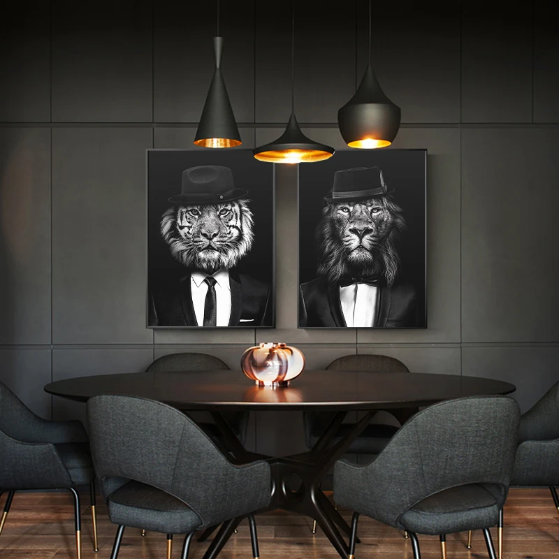 Черно-белый Лев Жираф Зебра Гепард орангутан настенные художественн...