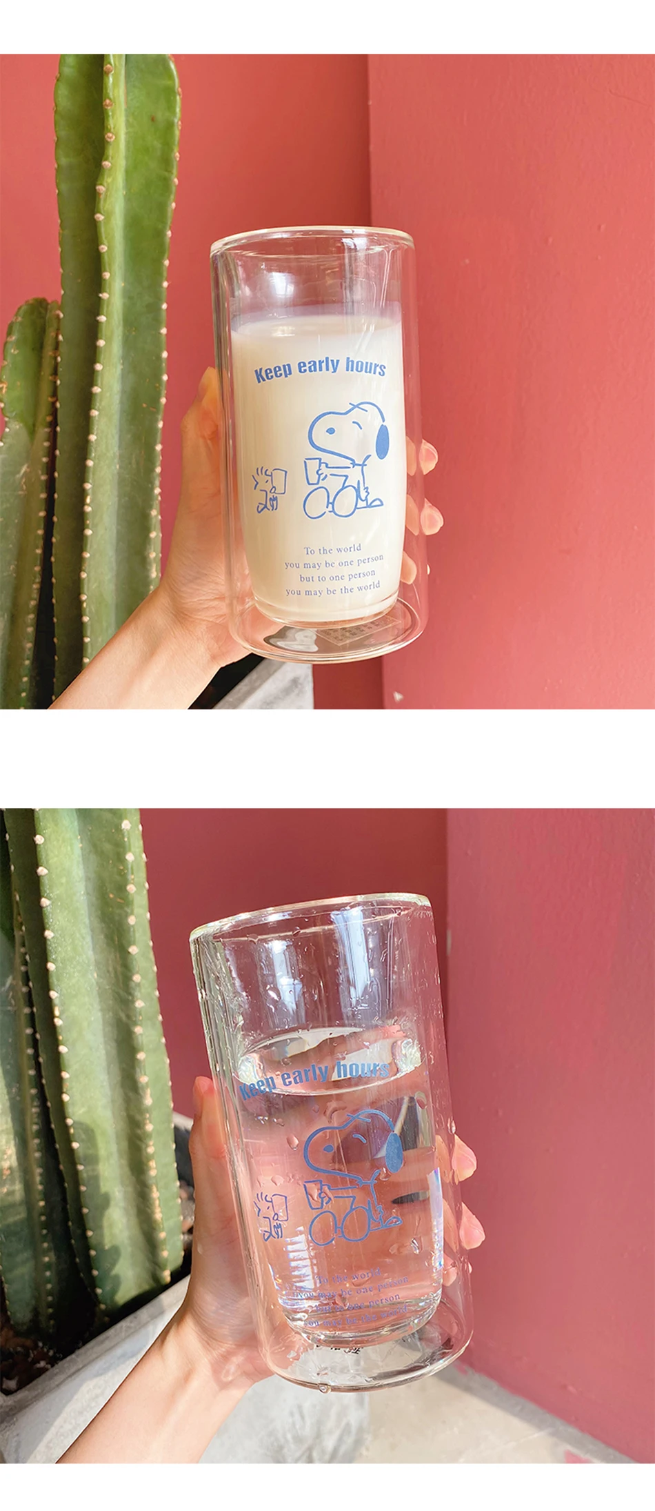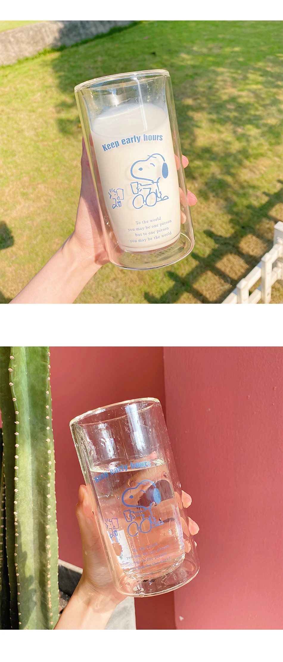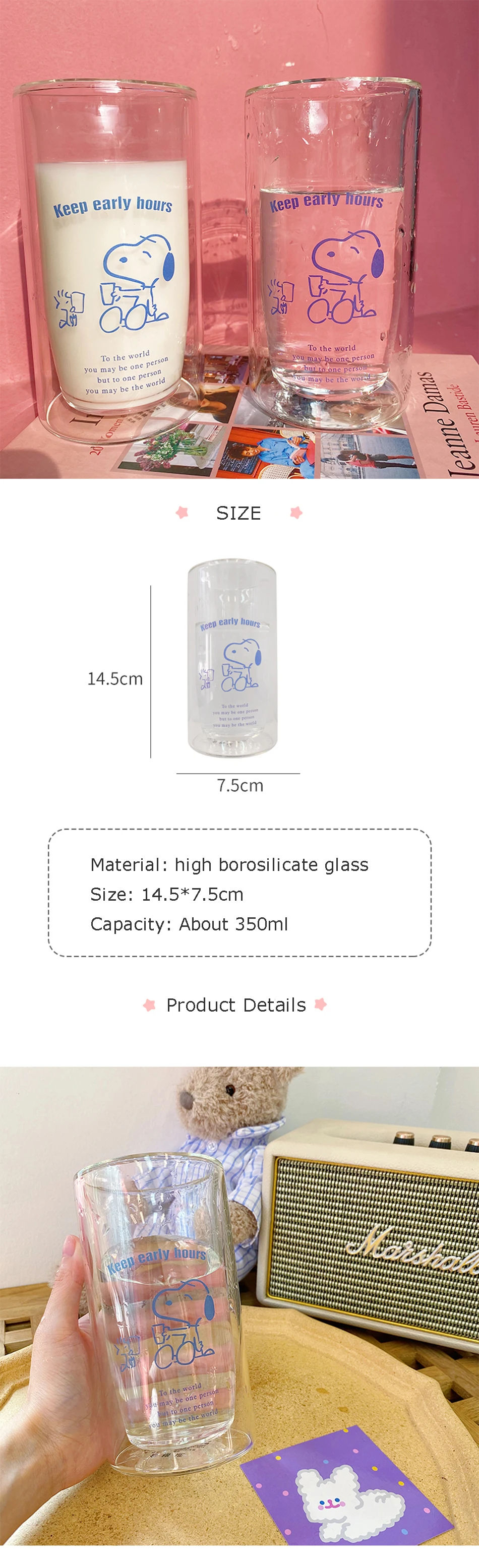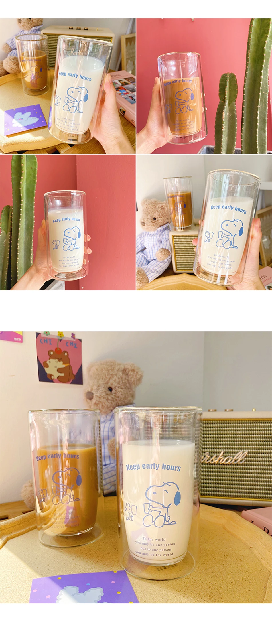 Double wall glass cup cute