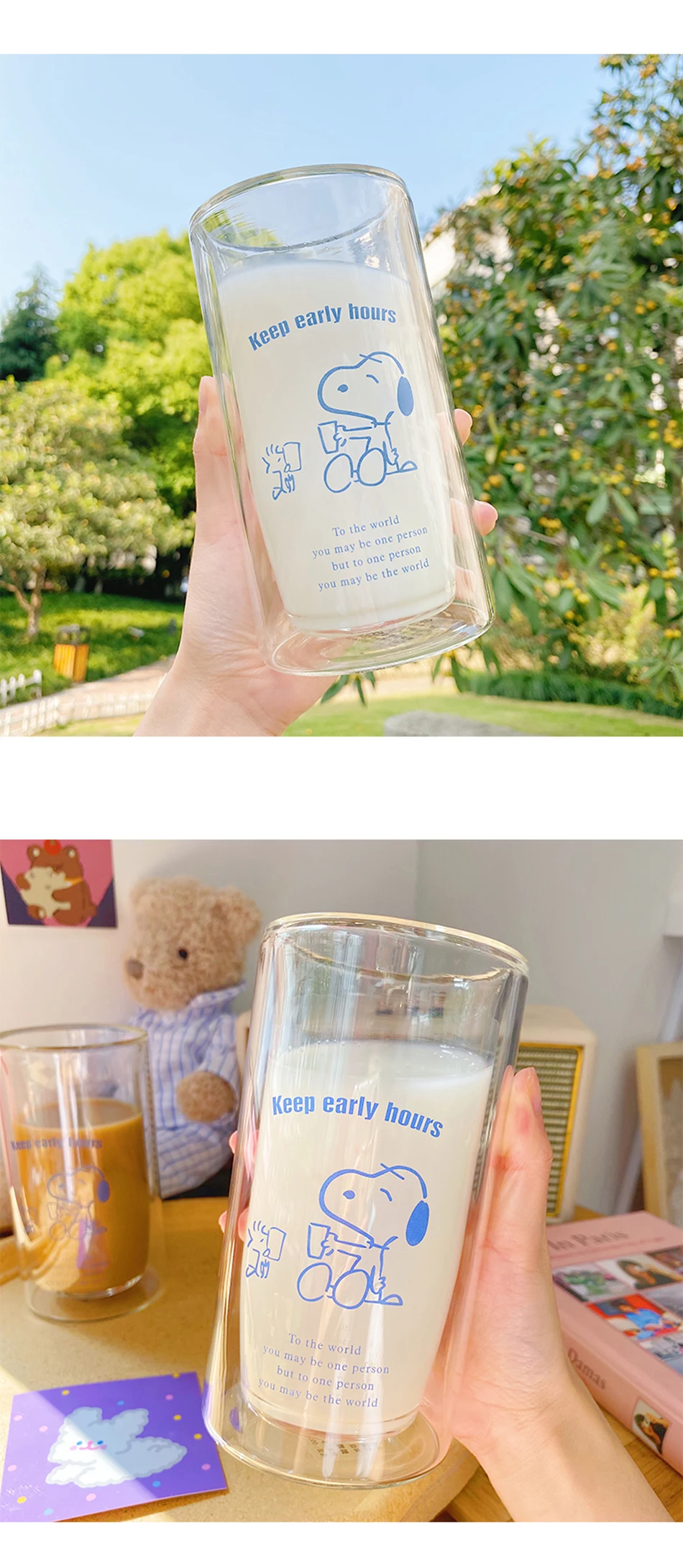 Double wall glass mug transparent cartoon