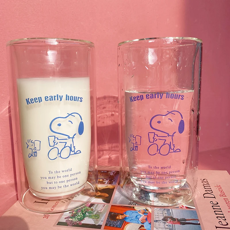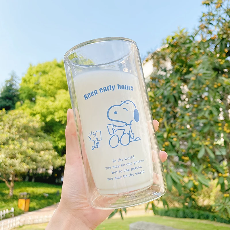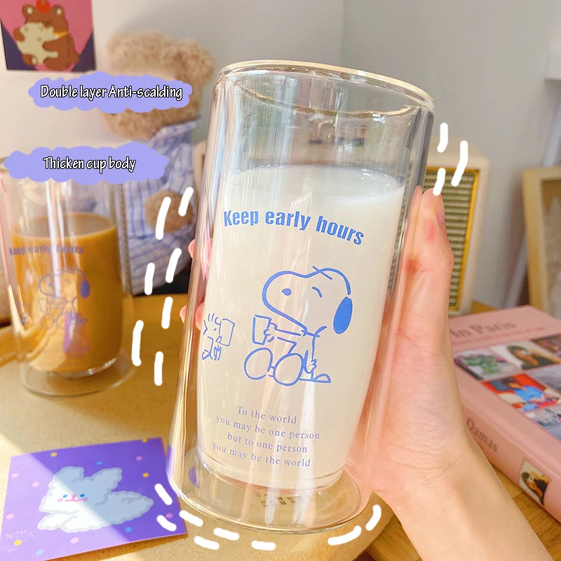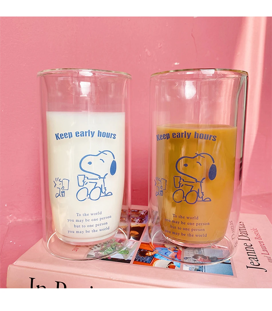 350 мл милые двухслойные Стеклянные чашки прозрачные термостойкие кофейные кружки для чая молочный фруктовый сок чашка простые домашние офисные чашки для воды