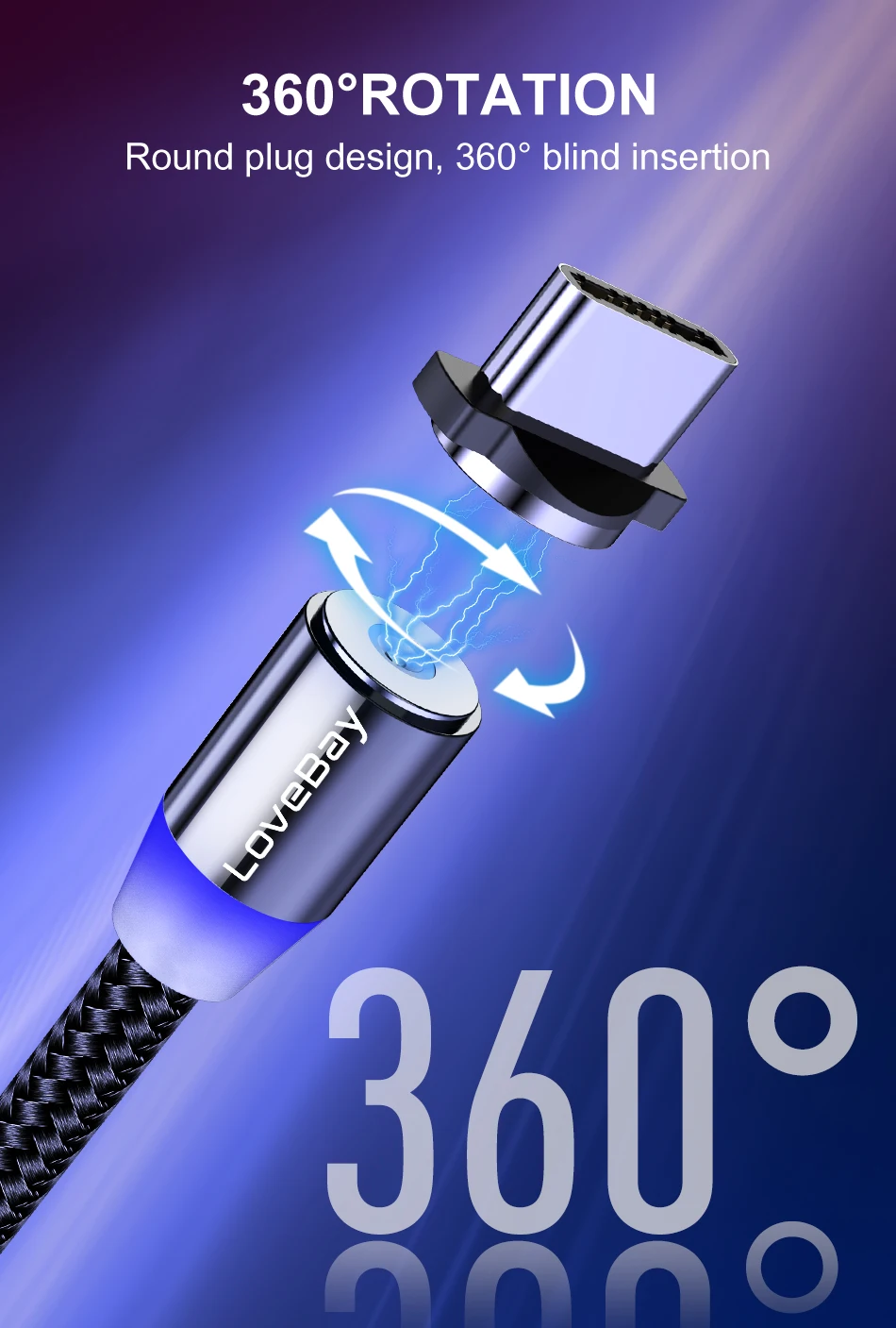 Features 6:360 Degree Rotate Round Magnetic Cable