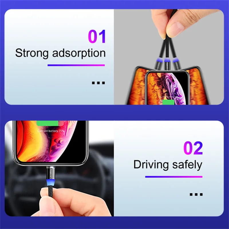 Магнитный кабель USB-Type CMicro USBLightning для телефонов iPhone ...