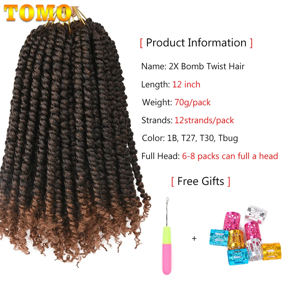 TOMO Предварительно скрученные волосы страсти вязание крючком 121824 дюймов синтетические плетеные волосы удлинители 12 прядей бомбинг твист для черных женщин