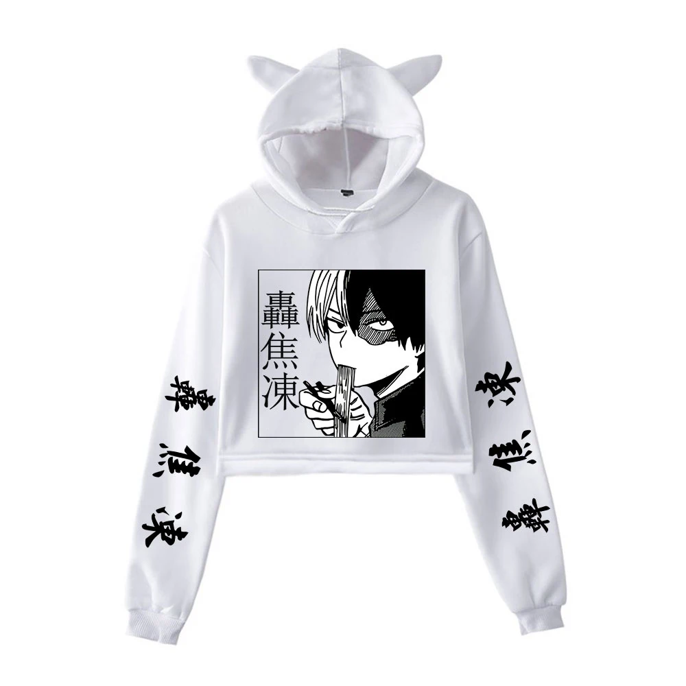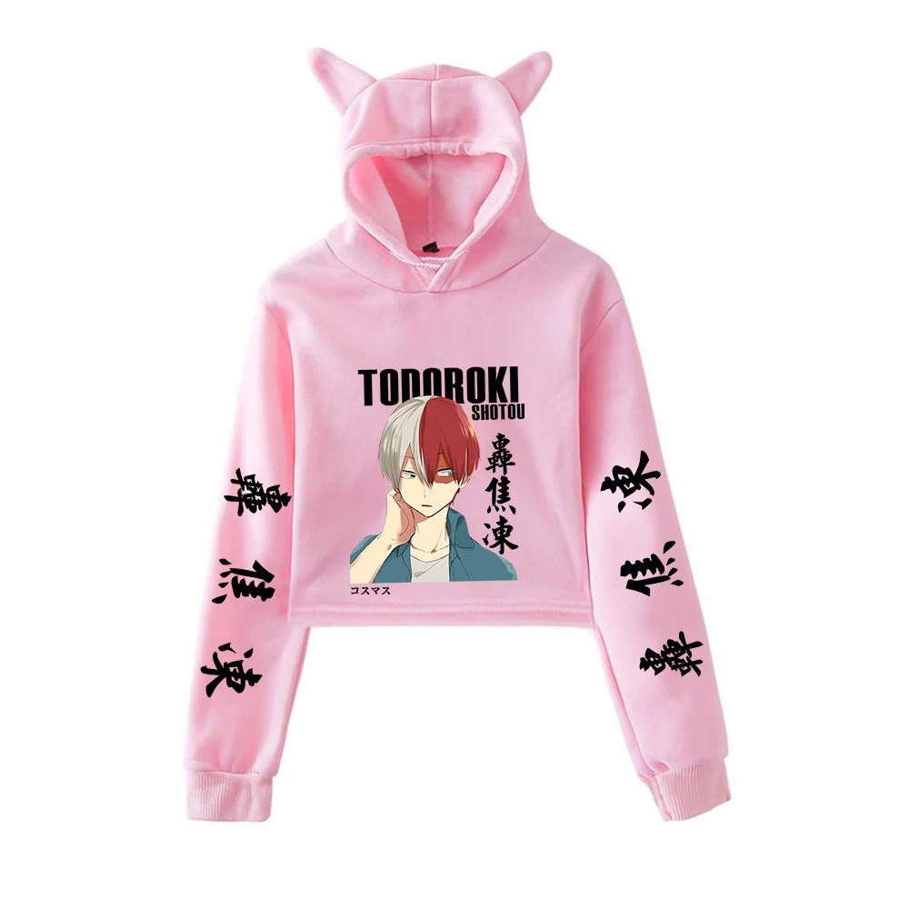 Худи креативное Boku с надписью No Hero Академия, укороченная Женская толстовка с капюшоном и кошачьими ушками, укороченные топы, худи для девушек, одежда в стиле аниме