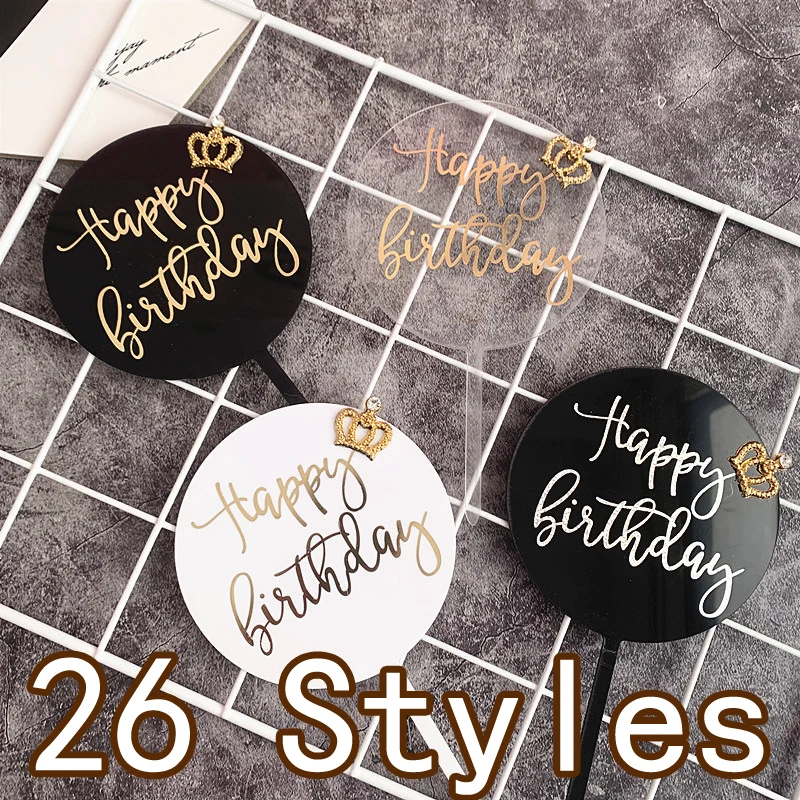 Позолоченный акриловый круглый Корона Топпер для торта С Днем Рожде...