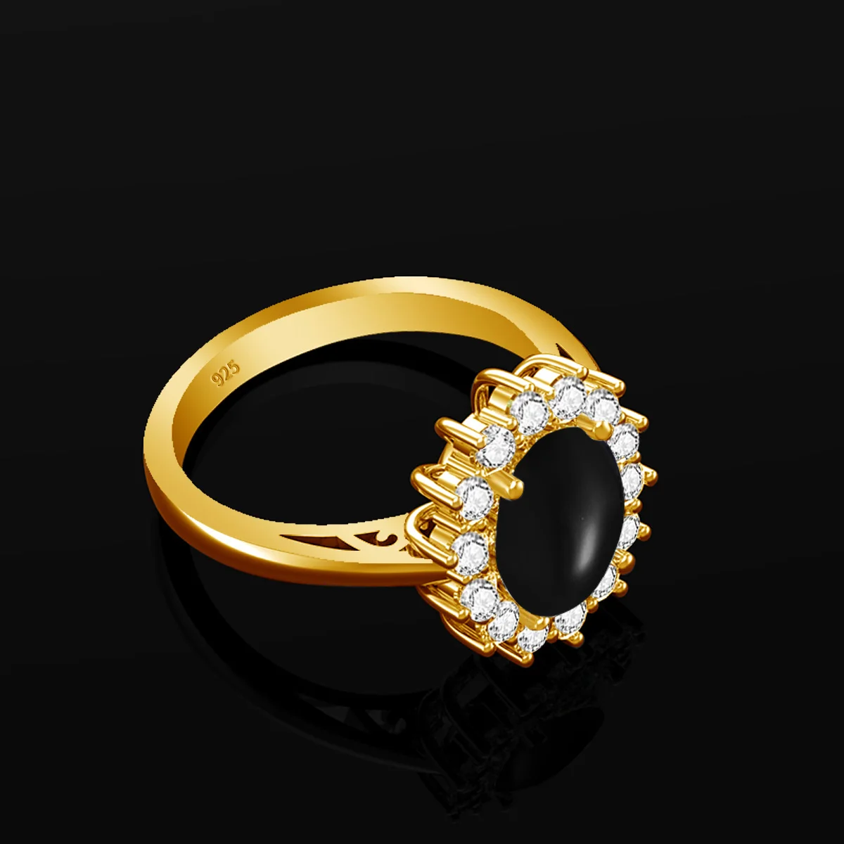 Бренд: SzjinaoОсновной камень: синтетический черный ониксБоковой камень: AAA + фианитФорма камня: КруглыйМетод Создания камня: лабораторное созданиеТип металла: Настоящее серебро 925 пробы с позолотойЦвет металла: золотойУпаковка:1 * ткань для полировки серебра,1 * Изысканная Подарочная коробка,1 * Кольцо с драгоценными камнями