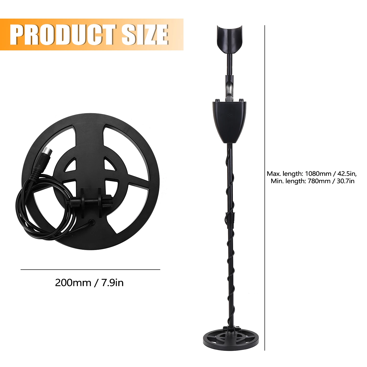 Характеристики:Материал: АБС + металлЦвет: черныйРежимы работы: все металлические и дисковыеЧувствительность: Максимальная глубина> 180 мм для U.S четверти во всех металлических режимахОбнаружение предметов: металл (железный гвоздь, покрытие из железа, алюминиевая петля, маленький алюминиевый продукт, монеты, золото, бронза, серебро)Рабочая частота: 5,69 кГцИсточник питания: аккумулятор 2*9 В (не входит в комплект)Рабочий ток: в режиме ожидания 10 мА, макс. 70 мАРазъем для наушников: 3,5 ммИндикатор низкого заряда батареи: ДаВодонепроницаемый диаметр поисковой катушки: 200 мм/7,9 дюймаПрименение: тестирование металлического инородного тела материалов, топлива и продуктов питания, обнаружение подземного трубопровода и линии, геологии, исследования, обнаружены похороненные сокровища золота, серебра и металла артефакты, приобретение металлолома промышленности, таможенный и безопасный контроль, обнаружение поиска Интерпола, проверка металлических инородных тел при доставке и багаже.Общая длина: около 1200 мм/47,2 дюймаРазмер посылка: 490*220*110 мм/19,3*8,7*4,3 дюймаПосылка Вес: 1299 г/2.9lbПримечание:1. Поисковая катушка является водонепроницаемой, но корпус управления не является водонепроницаемым.2. В комплект не входят наушники.Упаковочный лист:1 * Главный блок металлоискателя1 * подлокотник2 * шатун1 * поисковая катушка1 * Руководство пользователя