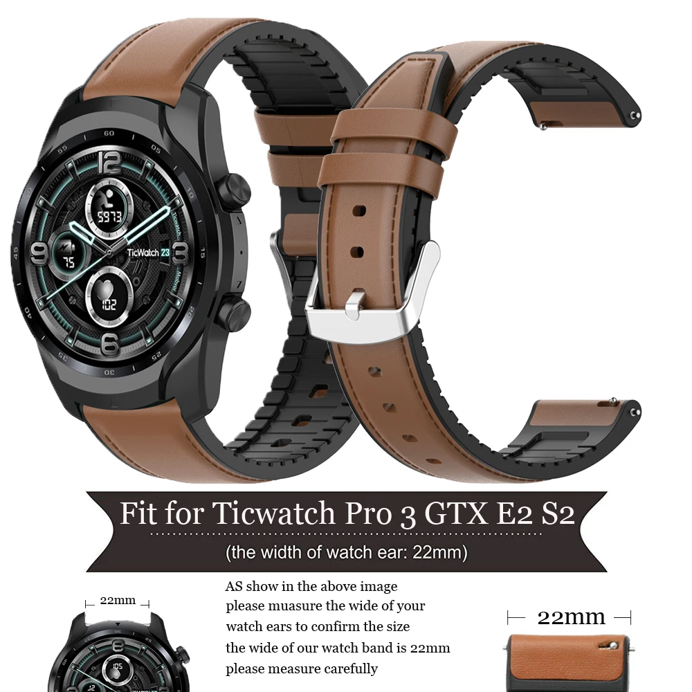 Ремешок для Ticwatch Pro 3 GPS 22 мм, кожаный силиконовый ремешок для Ticwatch Pro 2020/GTX/E2/S2, сменный Браслет-браслет