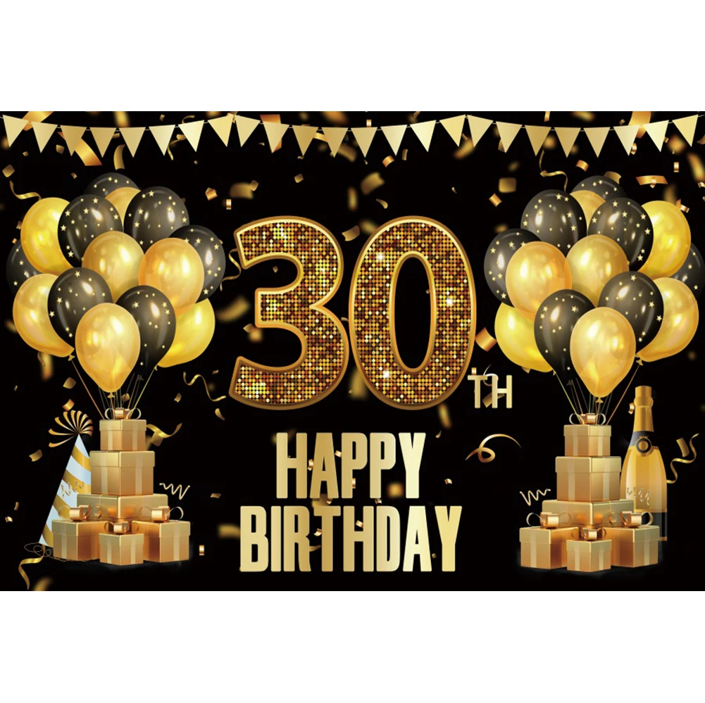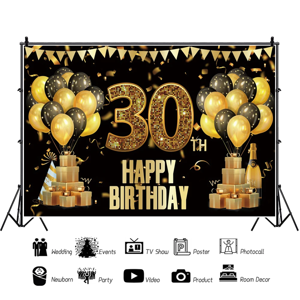 Laeacco Happy 30 40 50 м на день рождения фон для фотосъемки с Фоны золотые шары блестящие вечерние баннер индивидуальные фотофоны