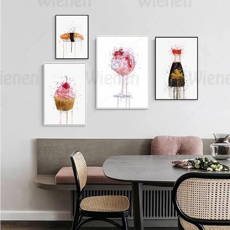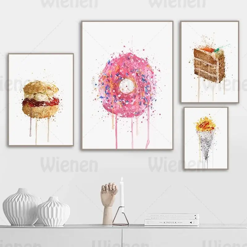 Простой постер в скандинавском стиле с изображением еды, десерта, торта, Пончика, мороженого, суши, яйца, Картина на холсте, ресторан, кухня, десертный магазин, домашний декор
