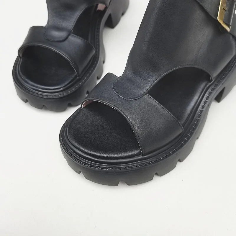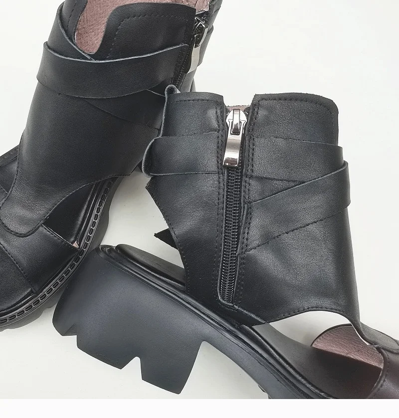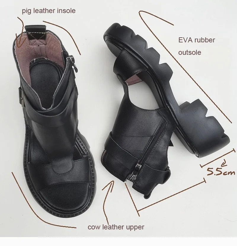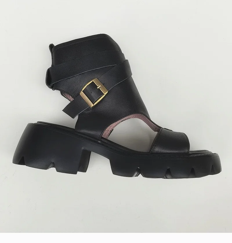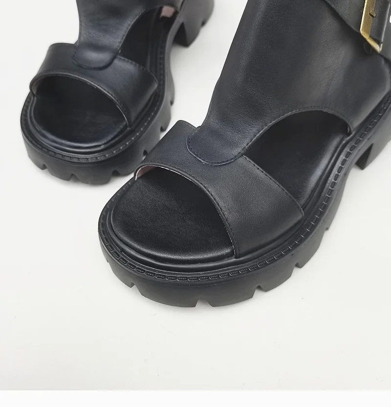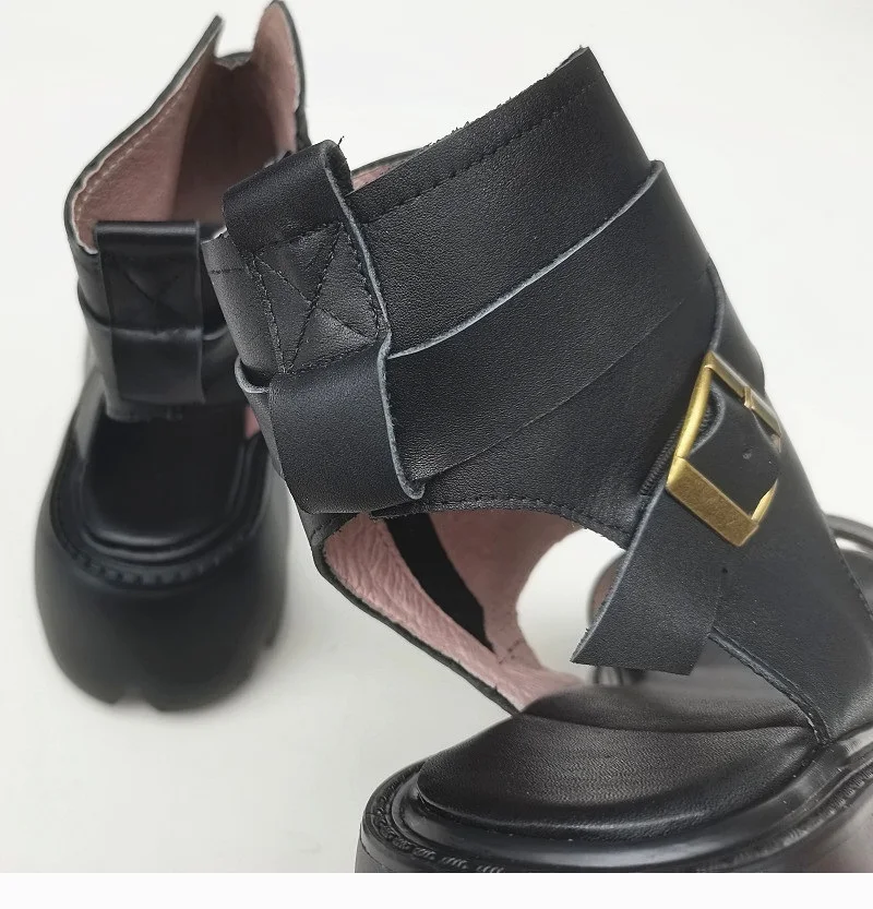 Сандалии-гладиаторы женские на блочном каблуке, босоножки из натуральной кожи на платформе, легкая подошва из ЭВА, черные, лето 100%