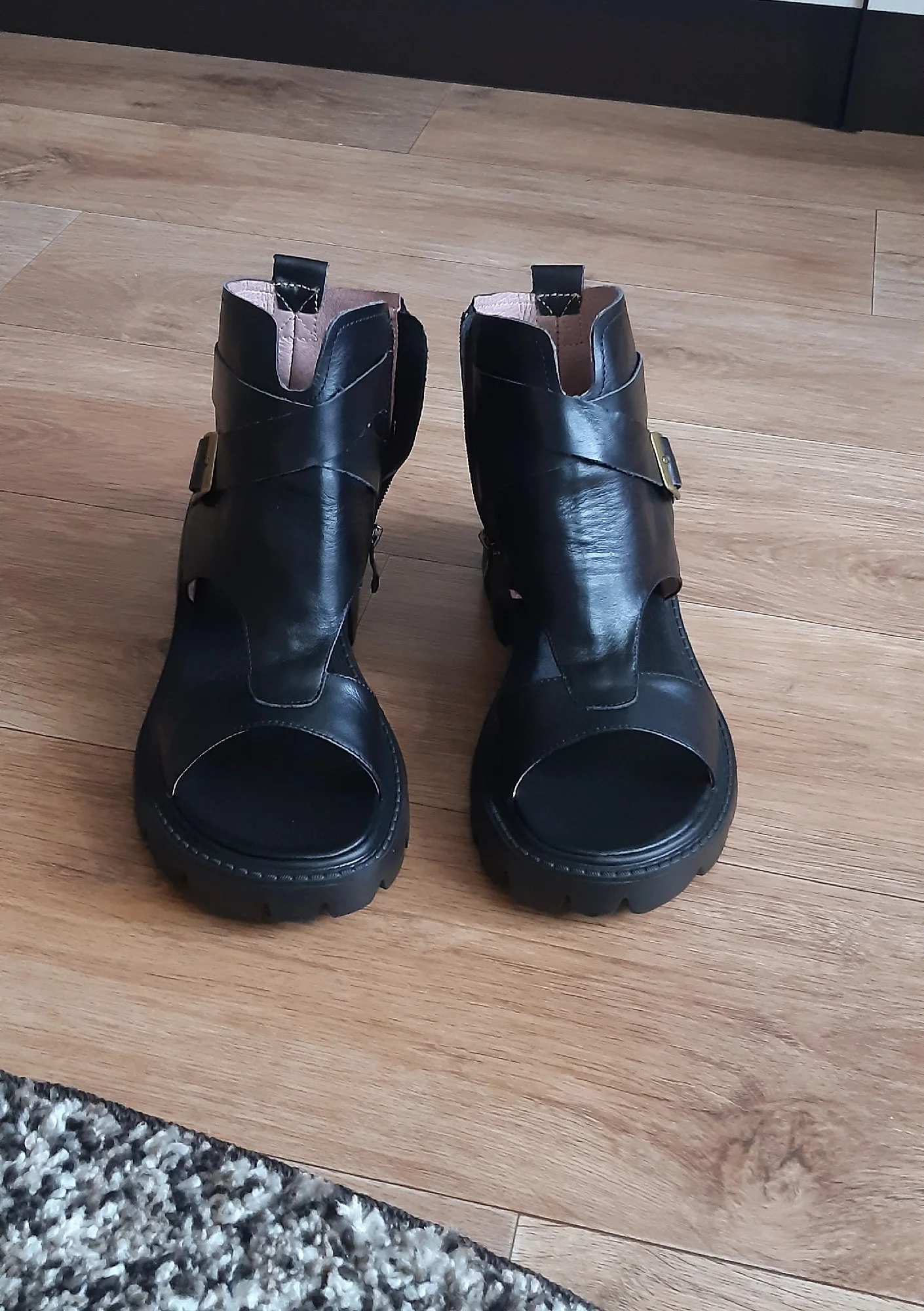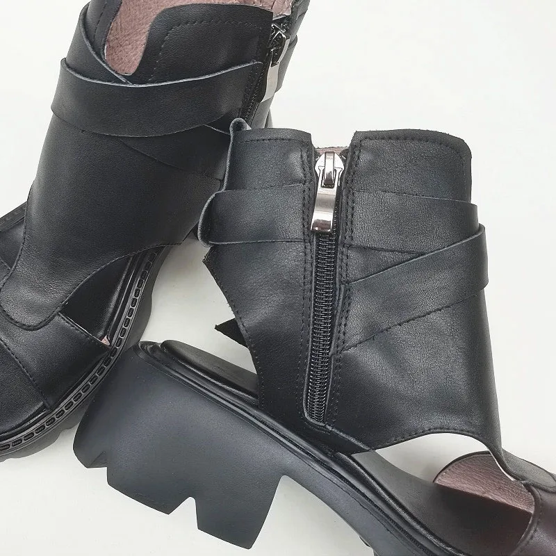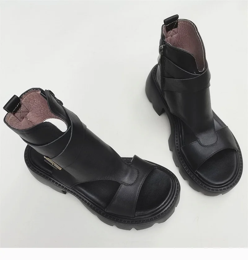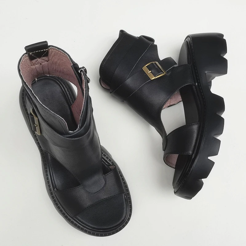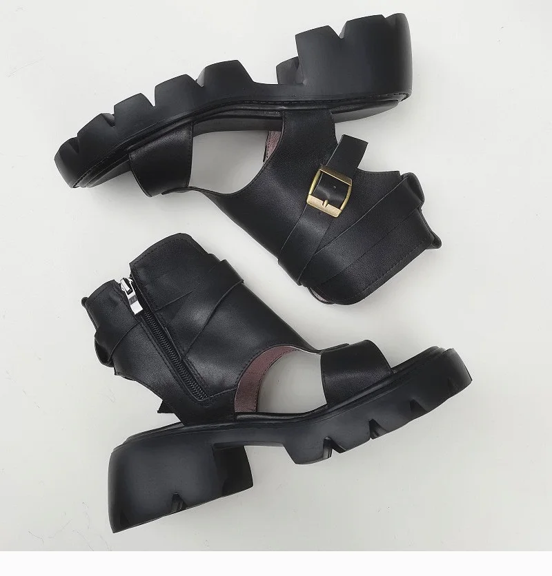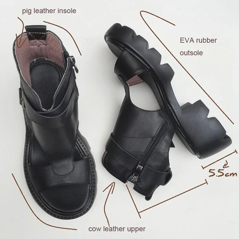 Сандалии-гладиаторы женские на блочном каблуке, босоножки из натуральной кожи на платформе, легкая подошва из ЭВА, черные, лето 100%