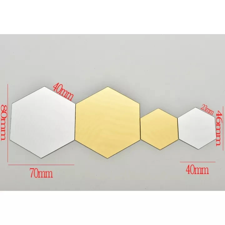Характеристики:100% Новый брендФорма: ШестиграннаяМатериал: акрилРазмер:XS: 46*40*23 мм;S: 80*70*40 ммЦвет: серебристый/золотой
