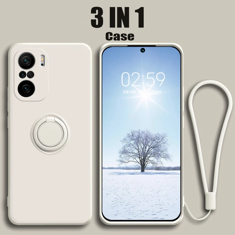 Чехол для Xiaomi Poco F3, Жидкая силиконовая резина, кольцо-держате...