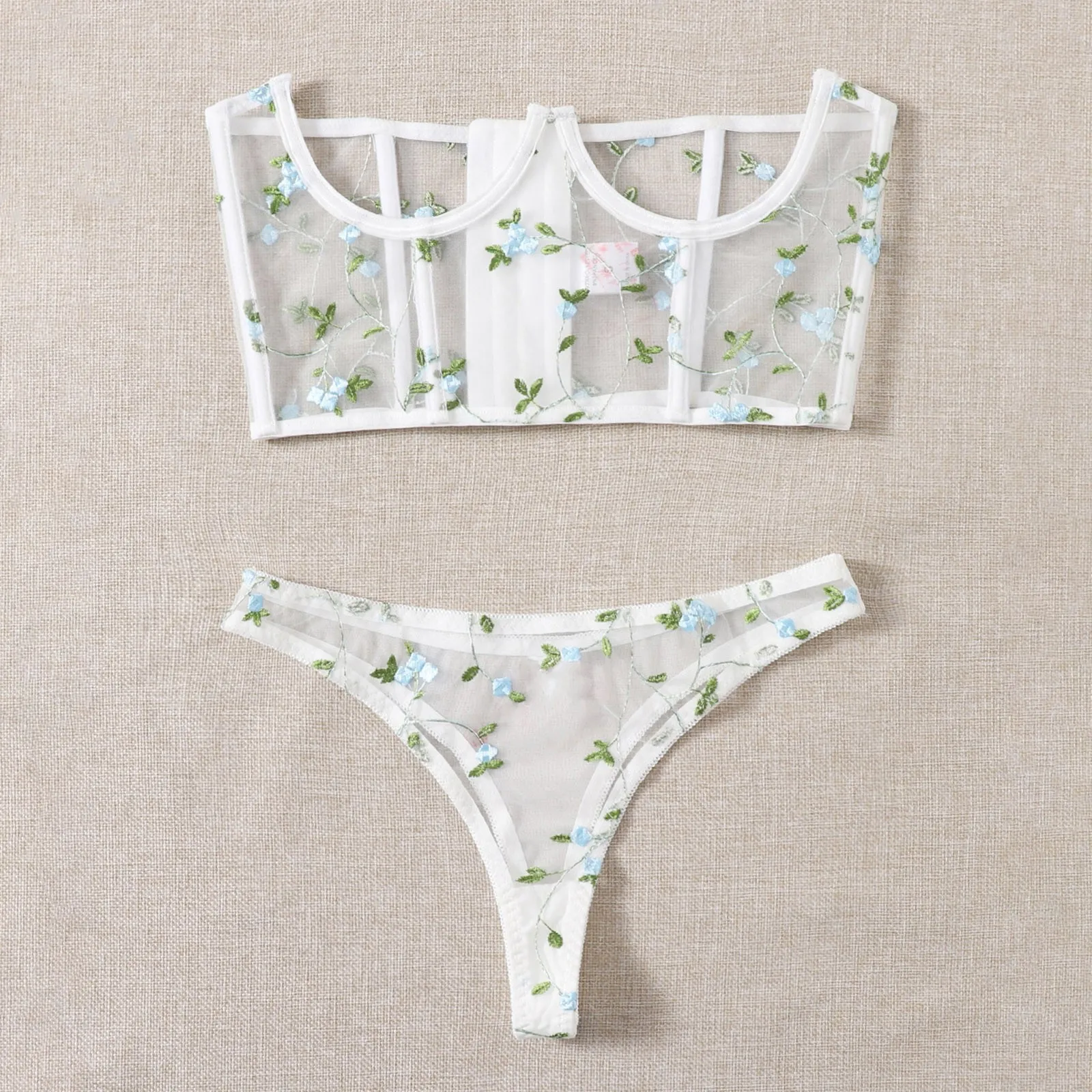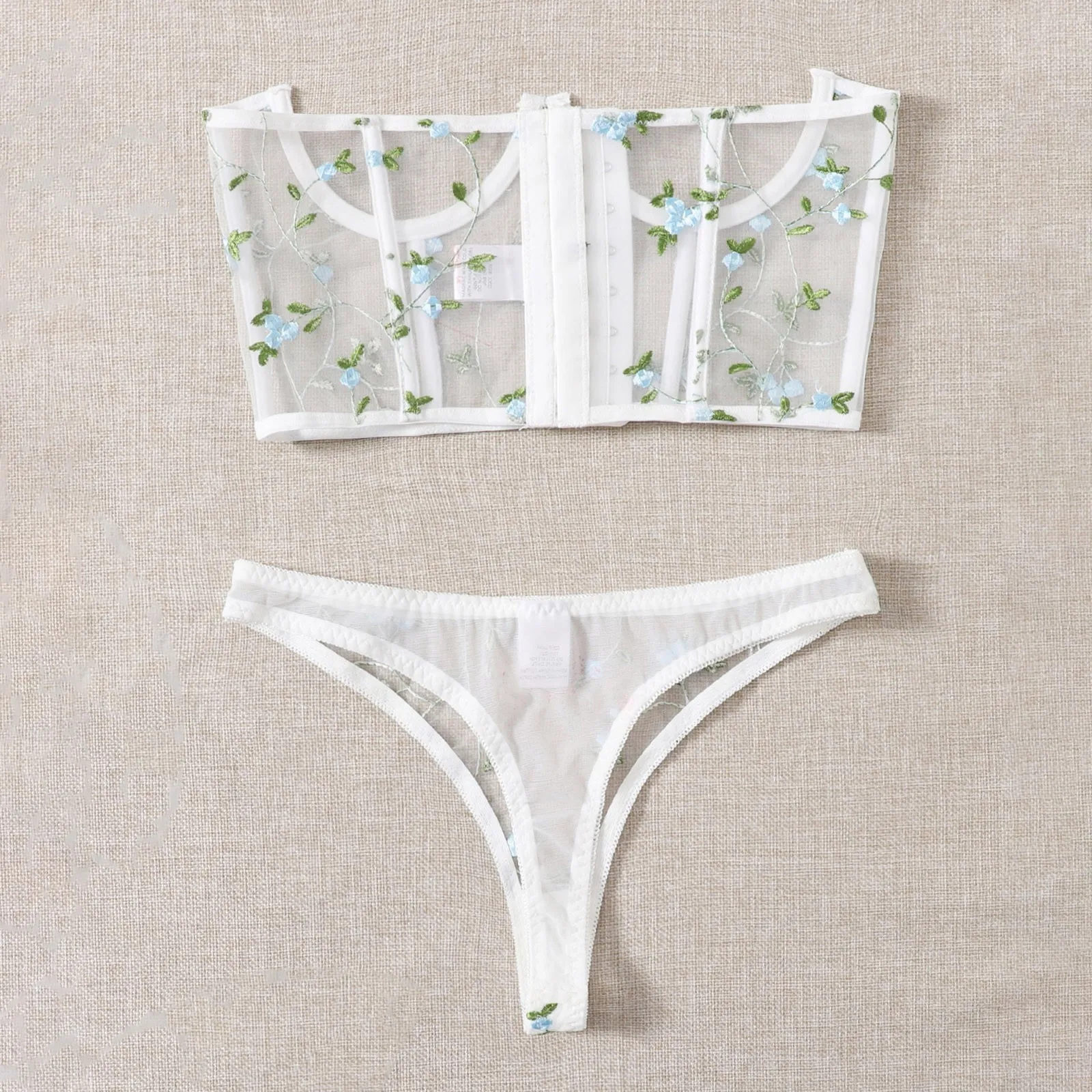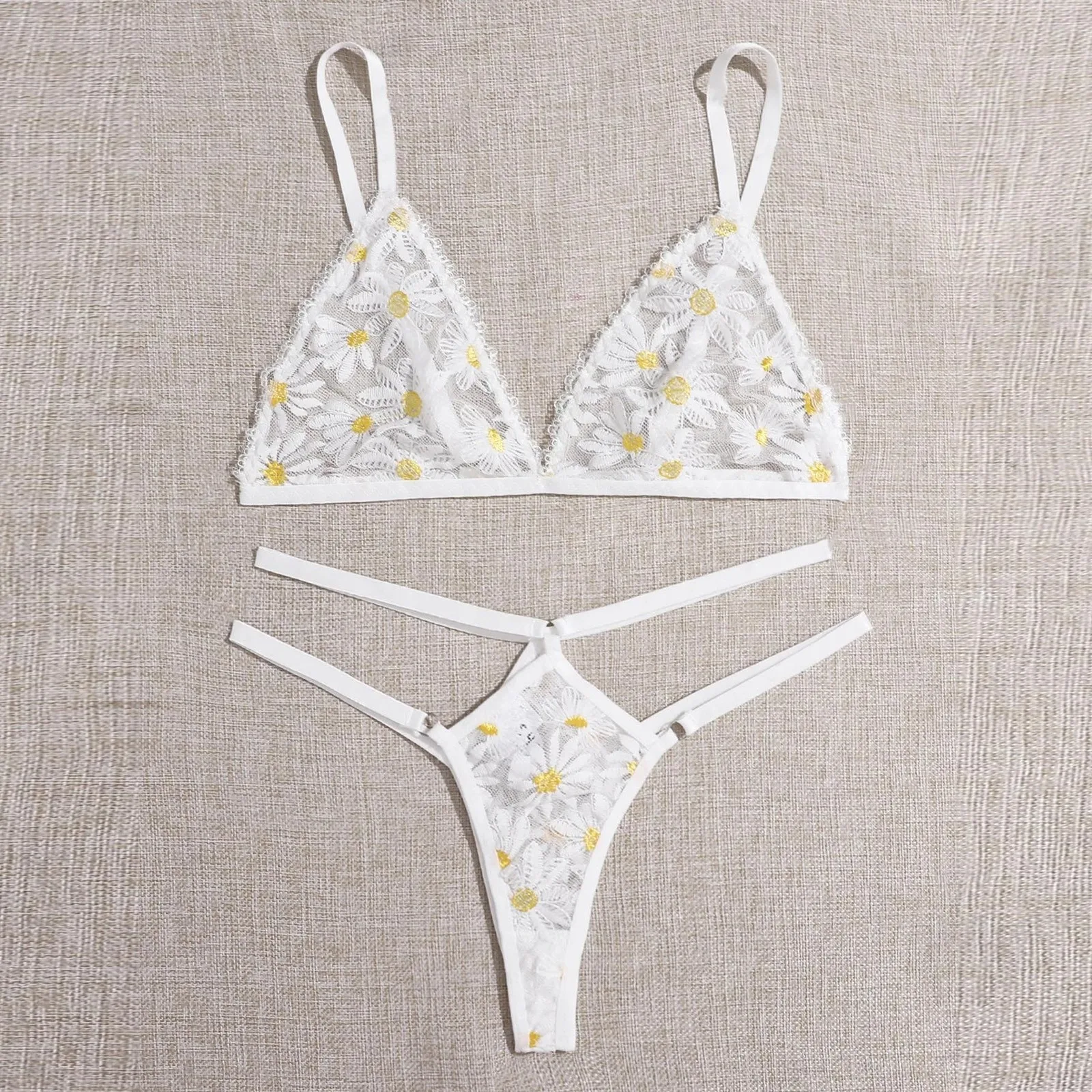 Стринги с вышивкой, кружевные, с цветами, 2021 г., бюстгальтер набор нижнего белья