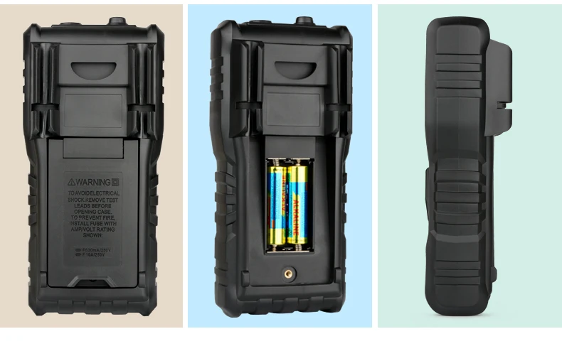 Этот инструмент представляет собой 9999 счетчик, Ручной цифровой мультиметр с истинным виртуальным значением и ручной/автоматической интеграцией. Он имеет большой, двойной, инвертированный цифровой ЖК-дисплей с имитацией баров и элементы освещения, которые легко читаются пользователям. Он имеет функции сигнализации для плавкого предохранителя, неправильной вставки измерительного щупа, защиты от перегрузки и индикации низкого напряжения батареи. Это отличный многофункциональный инструмент для профессионалов, фабрик, школ, энтузиастов или семей.Особенности:10000 отсчетов, аналоговые полосы и цифровой двойной дисплей, интеллектуальная двухъядерный измерение обработки данных.Ручной диапазон и Автоматический диапазон.V.f. C Функция измерения напряжения с переменной частотой, Бесконтактное измерительное напряжение NCV, переменное напряжение и текущий Частотный тест, автоматический идентификационный диод и ВКЛ/ВЫКЛ.Функция автоматической сигнализации предохранителя отключена, и ручка мультиметра неправильно вставляет функцию антиожога.1 кГц реальное эффективное измерение, 99.9mF большой диапазон емкости.Жилая однонастольная ручка для распознавания пожарной линии.Зонд-20 ~ 1000 градусов измерение температуры.Корпус изготовлен из огнеупорного материала ABS и имеет жесткую текстуру. Кожаный чехол из ПВХ, устойчивый к падению и износу.Характеристики:Материал: АБС-пластикДиапазон передач: Автоматический диапазон/ручной диапазонДисплей: Реверсивный av-экран с аналоговыми полосами и цифровым двойным дисплеем, 10000 отсчетовРабочая среда: 600V CAT IV и 1000V CAT IIITure RMS: 1 кГцДиапазон напряжения постоянного тока: 999.9 мВ/9,999 в/99,99 в/999,9 вРазрешение напряжения постоянного тока: 0.1 мВ/1 мВ/10 мВ/100 мВТочность напряжения постоянного тока: ± (0.5% считывания + 3 знака)Диапазон напряжения переменного тока: 999.9 мВ/9,999 в/99,99 в/750,0 вНапряжение переменного тока: 0.1 мВ/1 мВ/10 мВ/100 мВТочность напряжения переменного тока: 999,9 мВ ~ 99,99 в: ± (0.8% считывания + 3 знака); 750,0 в: ± (1% считывания + 5 цифр)Диапазон тока постоянного тока: 99,99 μA/999.9mA/600mA/10AРазрешение тока постоянного тока: 0,01 μA/0.01mA/0.1mA/10mAТочность тока постоянного тока: 99,99μa ~ 600мА: ± (0.8% считывания + 3 знака); 10A: ± (1.2% считывания + 3 знака)Диапазон переменного тока: 99.99mA/600mA/10AПеременный ток Разрешение: 0. 01ма/0. 1мА/10мАТочность переменного тока: 99,99ма ~ 600мА: ± (1% считывание + 3 знака); 10A: ± (1.5% считывание + 3 знака)Частотный диапазон: 9,999 Гц/99,99 Гц/999,9 Гц/9,999 кГц/99,99 кГц/999,9 кГц/9,999 МГцРазрешение частоты: 0,001 Гц/0,01 Гц/0,1 Гц/0,001 кГц/0,01 кГц/0,1 кГц/0,001 МГцТочность частоты: ± (1% считывание + 3 знака)Диапазон сопротивления: 999,9Ω/9,999k Ω/99,99k Ω/999,9k Ω/9,999m Ω/99,99mΩРазрешение сопротивления: 0.1Ω/1Ω/10Ω/100Ω/1k Ω/10kΩТочность сопротивления: 999,9 Ω ~ 9,999mΩ: ± (0.8% считывание + 3 знака); 99,99mΩ: ± (1.2% считывание + 5 цифр)Диапазон емкости: 9.999nF/99.99nF/999.9nF/9,999 мкФ/99,99 мкФ/999,9 мкФ/9.999mF/99.99mFРазрешение емкости: 0.001nF/0.01nF/0.1nF/1nF/10nF/100nF/1 мкФ/10 мкФТочность емкости: 9.999nF ~ 9.999mF: ± (4% считывание + 3 цифры); 99,99mf: ± (5% считывание + 3 цифры)Диод диапазон: 0,15 ~ 3VРазрешение диода: 0,001 вДиапазон зуммера и непрерывности: 100 ОмЗуммер и разрешение непрерывности: 1ΩДиапазон температур: -20 ~ 1000 °C / -4 ~ 1832 °FРазрешение температуры: 1 °C / 1 °FТочность температуры: ± (1% показания + 3 цифры)Пониженного напряжения подсказка: менее чем 2,4 VРабочая температура/Влажность: 0 ~ 40 °C; <80% RHТемпература хранения/Влажность: -10 ~ 60 °C; <70% RHПитание: 2*1,5 V AA батарея (не 