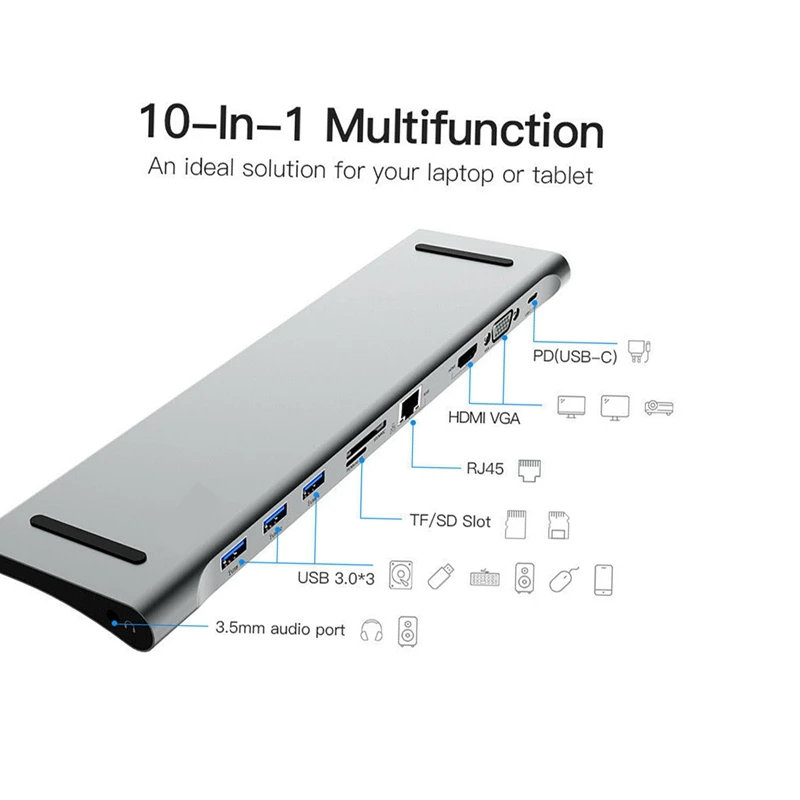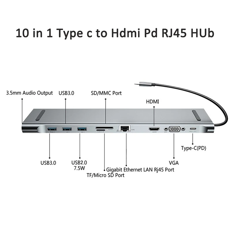 Док-станция для ноутбука 10 в 1, USB Type-C, HDMI, VGA, RJ45