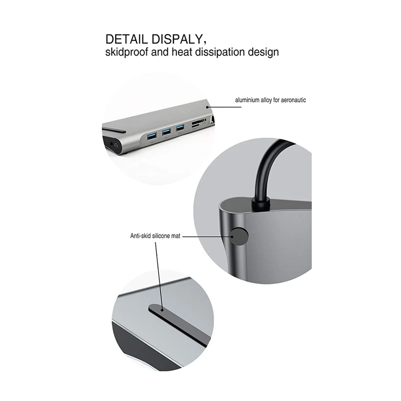 10 в 1 USB Type C концентратор адаптер для ноутбука Док-Станция HDMI VGA RJ45 PD для HP Lenovo поверхность совместима