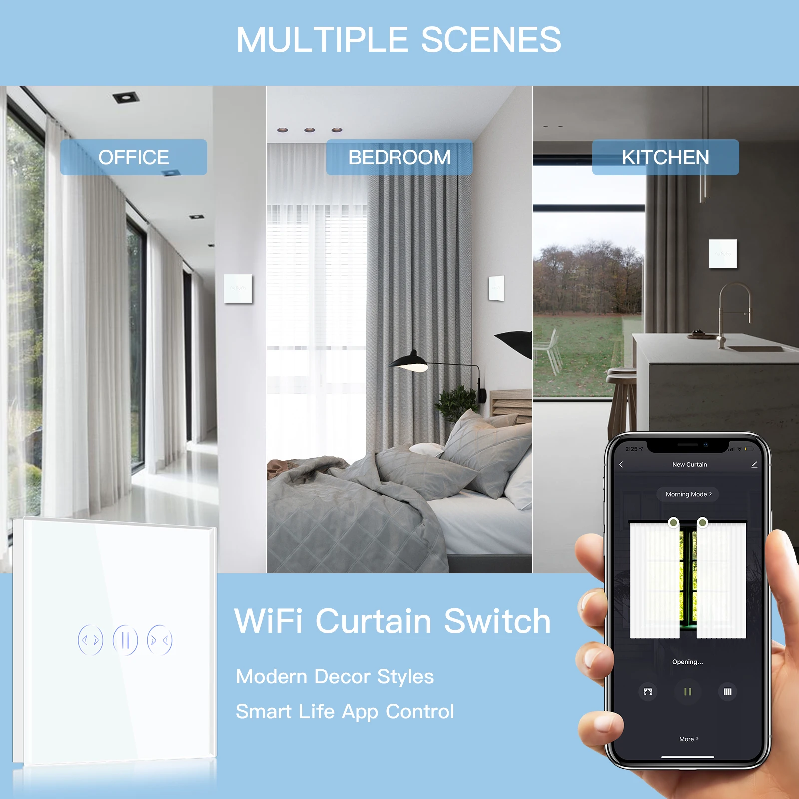 Настенный переключатель для штор BSEED, умный стеклянный переключатель с Wi-Fi и управлением через приложение