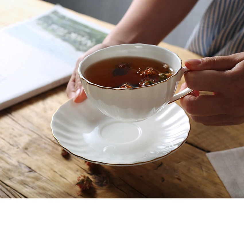 Фарфоровая чайная чашка 210 мл с золотой отделкой, кофейные чашки для капучино, набор чайных чашек для белого чая, британская кофейная чашка