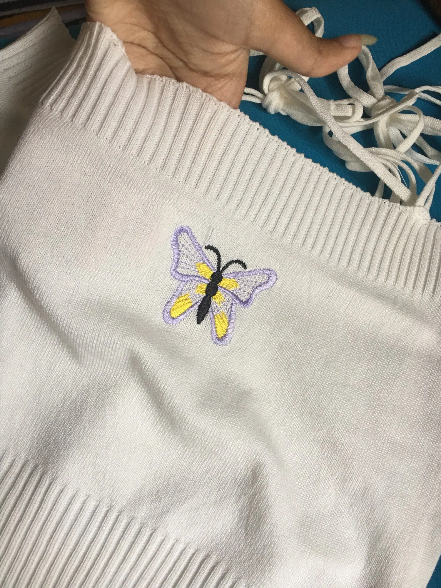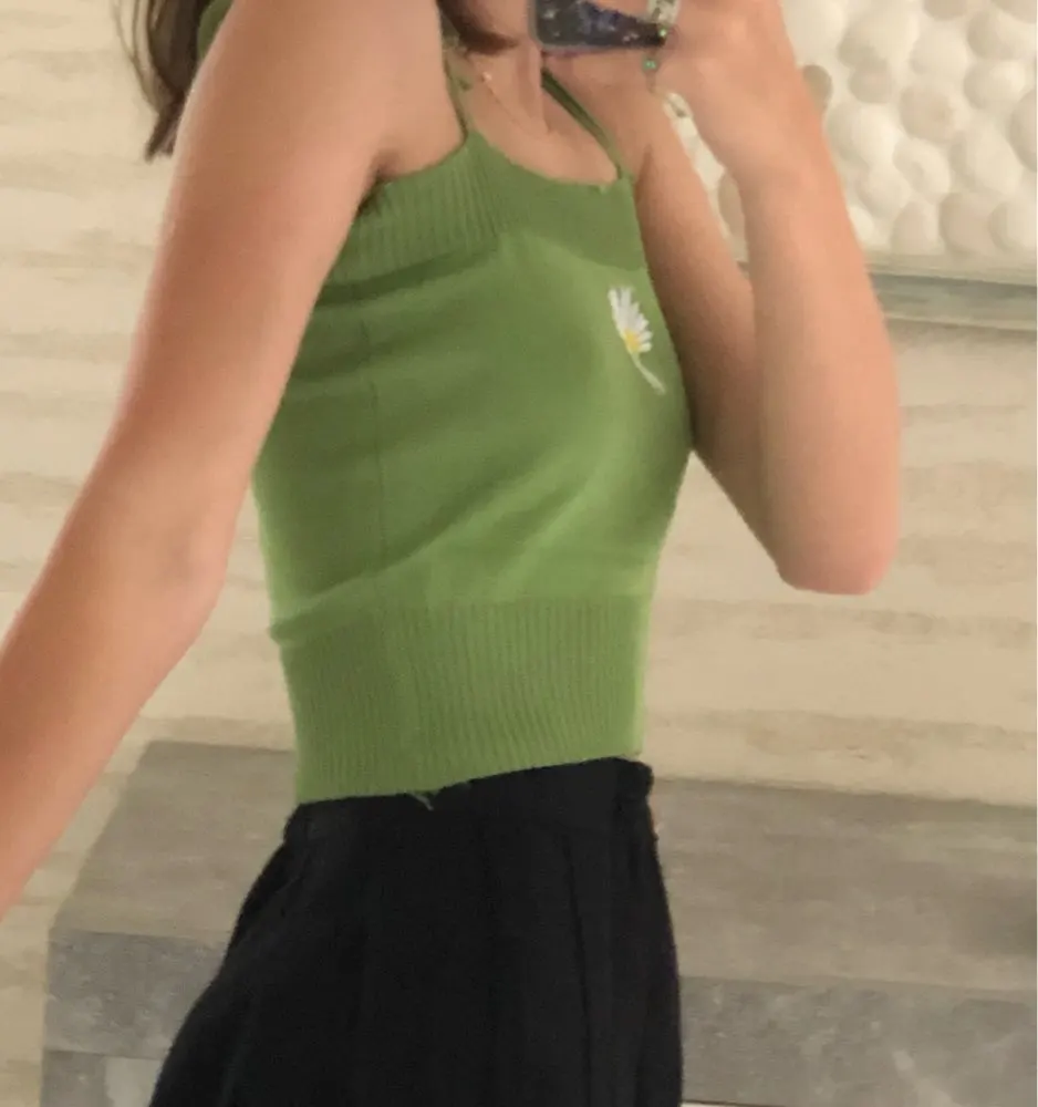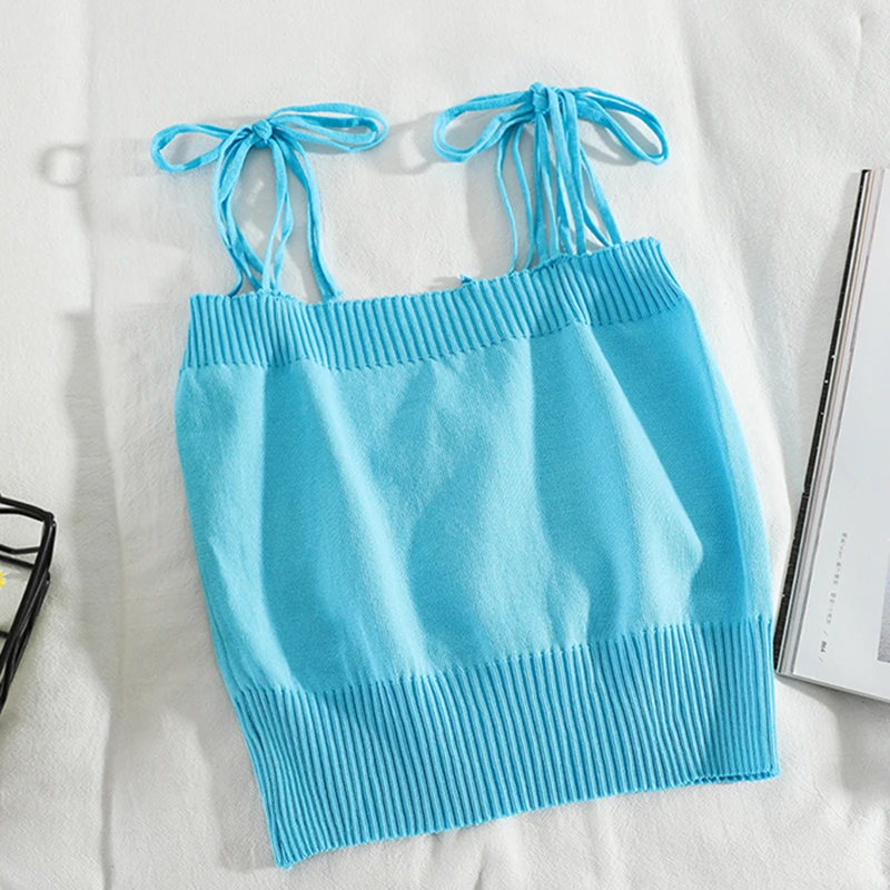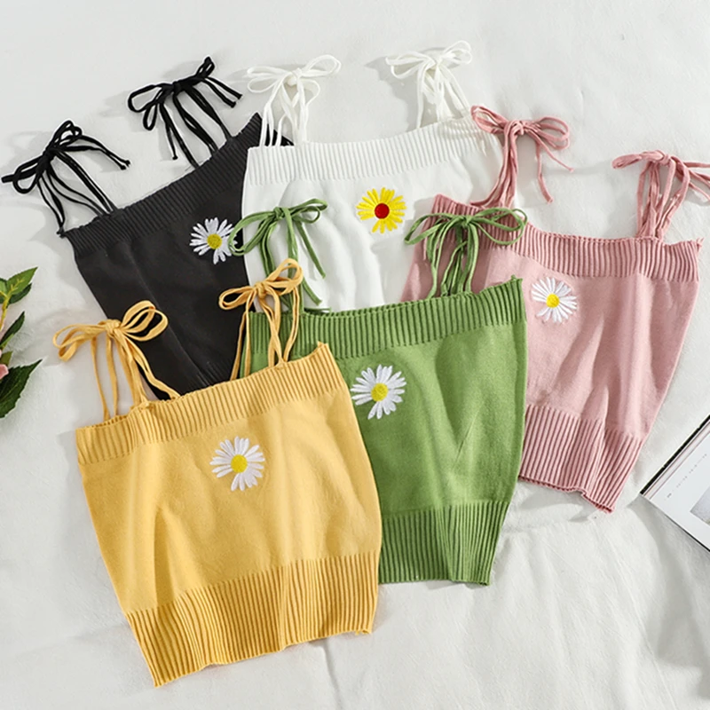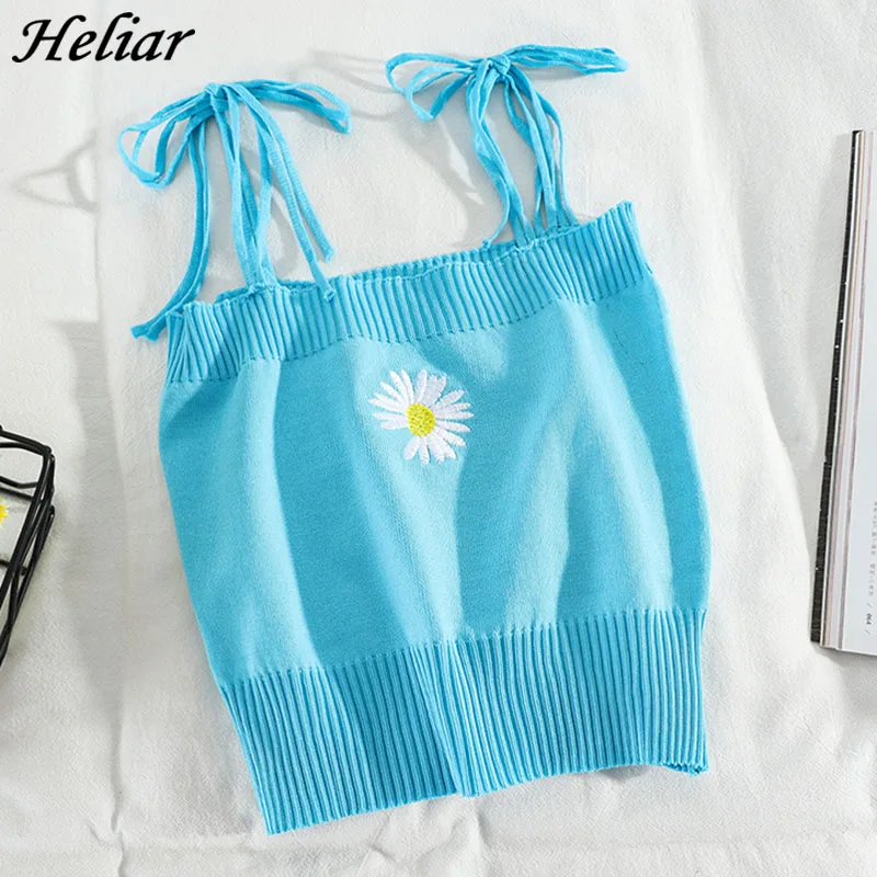 Женский укороченный топ Heiar, синий вязаный Топ с цветочной вышивкой и бретельками, Y2K, милый плиссированный кроп-топ для девочек, лето 2021