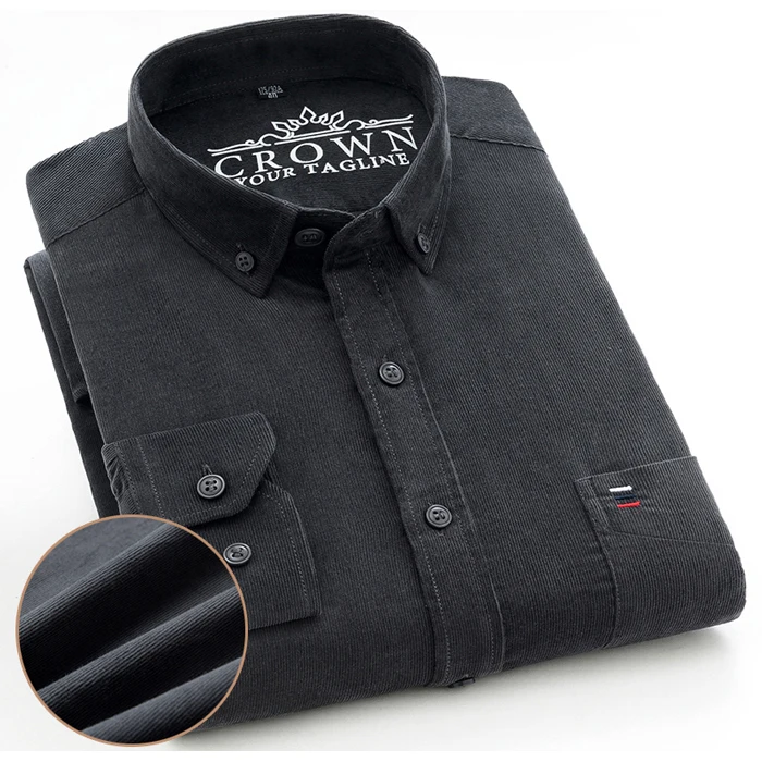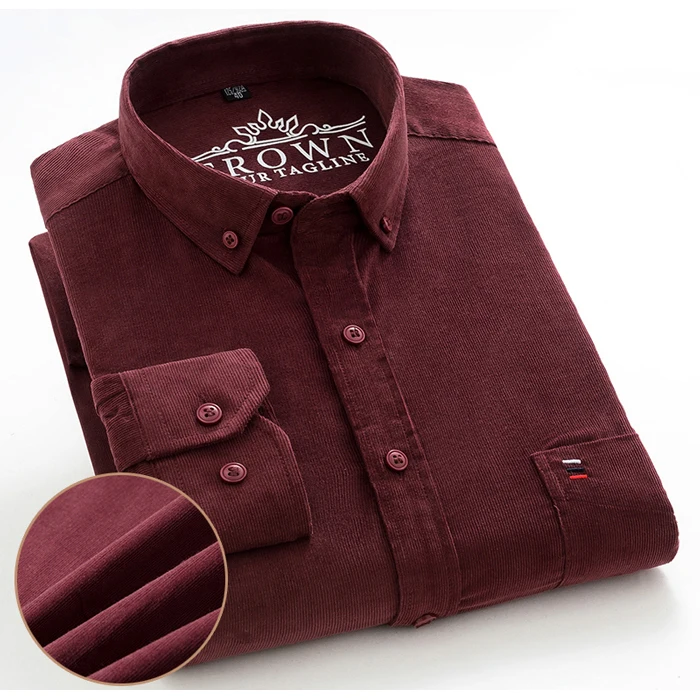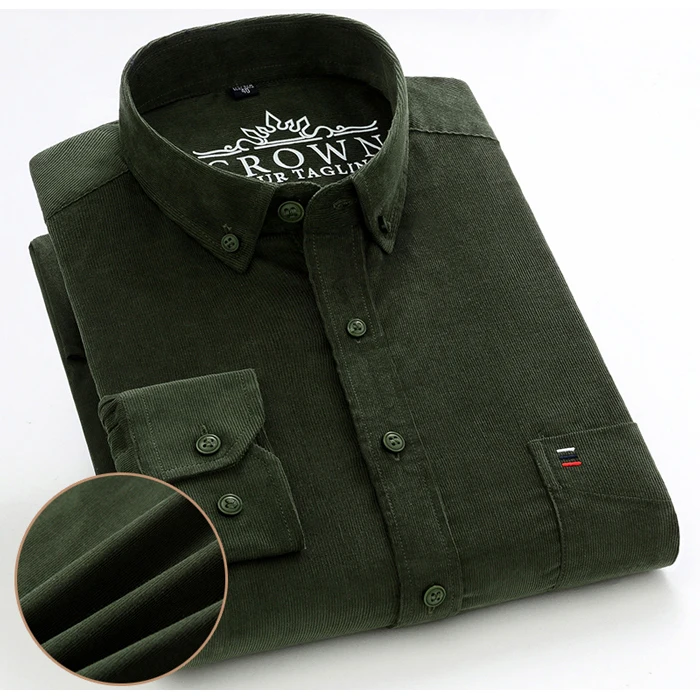 Мужская винтажная Вельветовая рубашка, повседневная качественная рубашка из 100% хлопка с длинными рукавами, одним накладным карманом и воротником на пуговицах