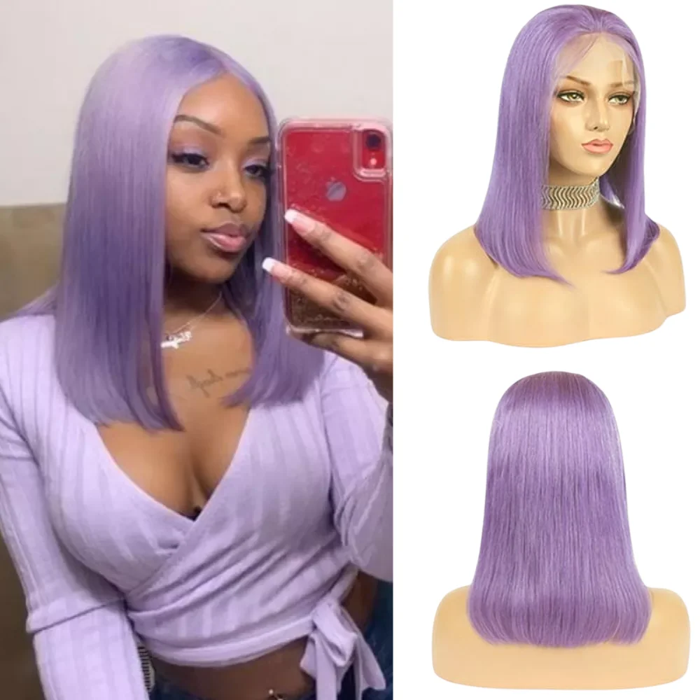 Цветные фиолетовые парики из натуральных волос с кружевом и Бобом, 150% плотность, средняя часть, короткий парик из светлых волос для черных женщин