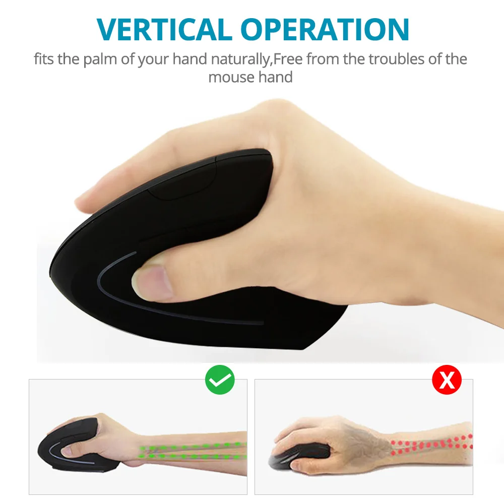 Мышь компьютерная беспроводная эргономичная Вертикальная игровая, 1600DPI, 6D, для ПК и ноутбуков