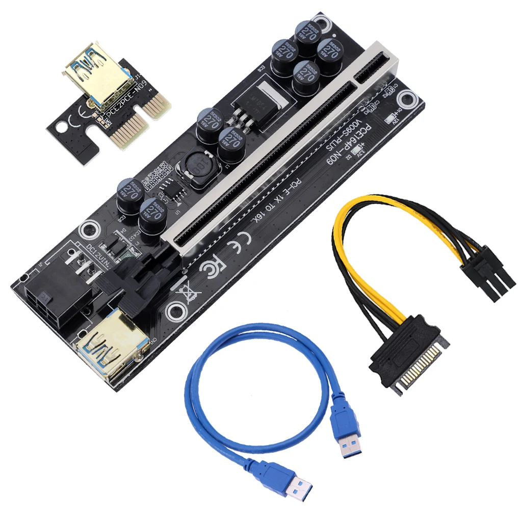 Райзер VER009 USB 3,0 PCI-E, Райзер VER 009S PLUS Express 1X 4x8x 16x, Райзер-адаптер pcie, карта SATA, от 15pin до 6pin, 6 шт.