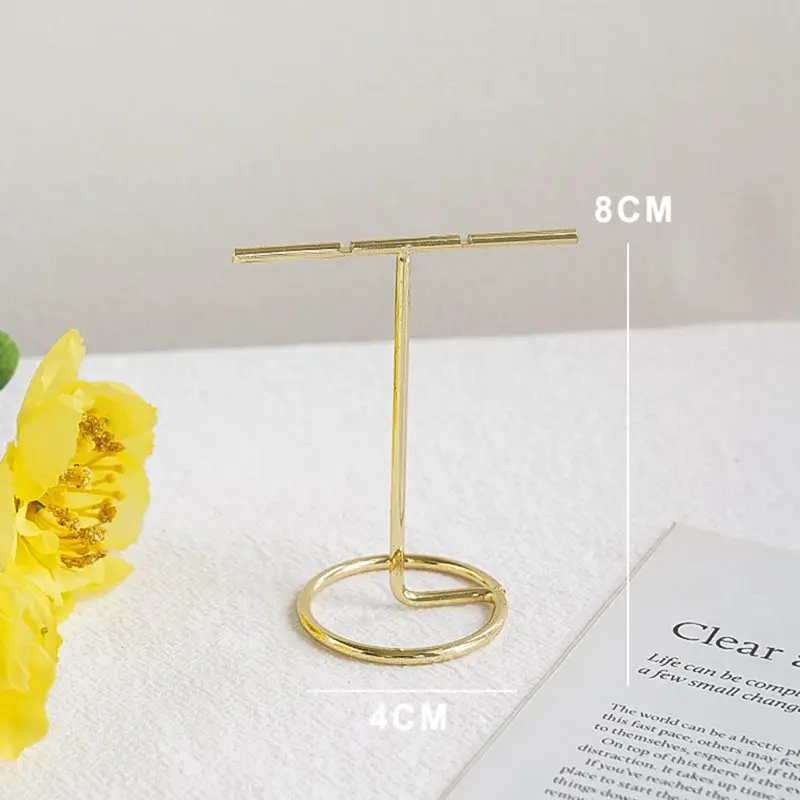 Подставка-держатель для серег, Т-образный держатель золотистого цвета с деревянной основой для демонстрации ювелирных изделий, онлайн-магазинов, реквизит для фотографии, Органайзер