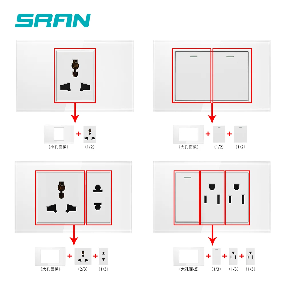 Бразильскоеитальянское стандартное стекло и функциональный ключ без комбинации белого переключателя сделай сам розетка глобальная 118 мм * 72 мм SRAN K6