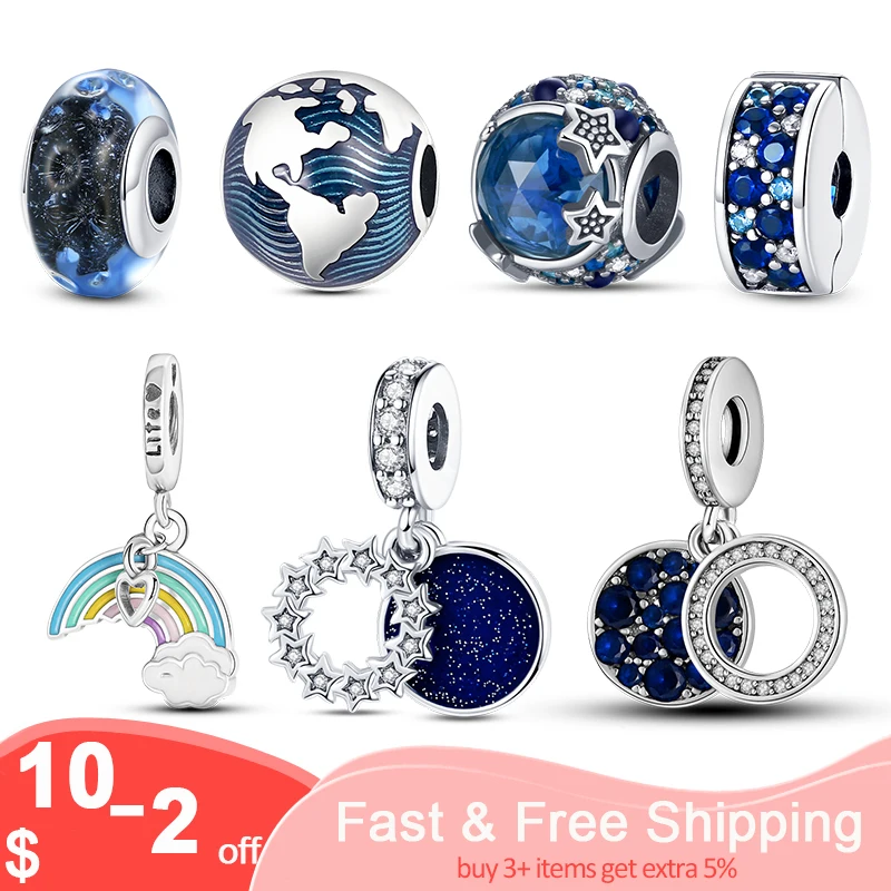 Подвеска-зажим для браслета Pandora, серебристый и синий цвета