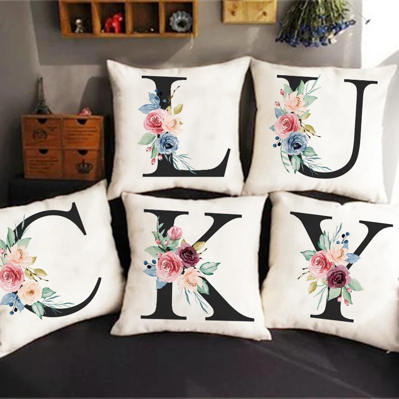 Наволочка с цветочным рисунком Подушка с алфавитом, наволочка для с...