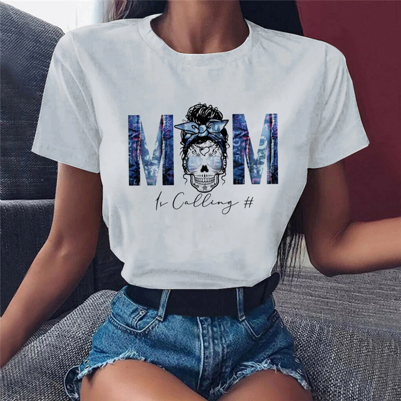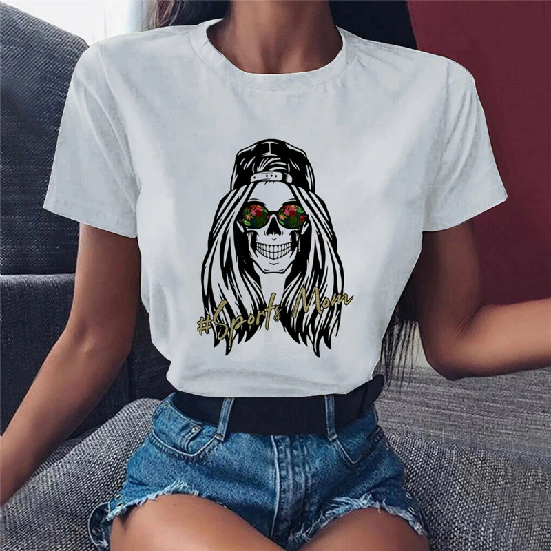 Футболка женская 2021 Лето harajuku череп Мама Жизнь принт женские футболки с коротким рукавом на каждый день модная футболка femme размера плюс XXXL