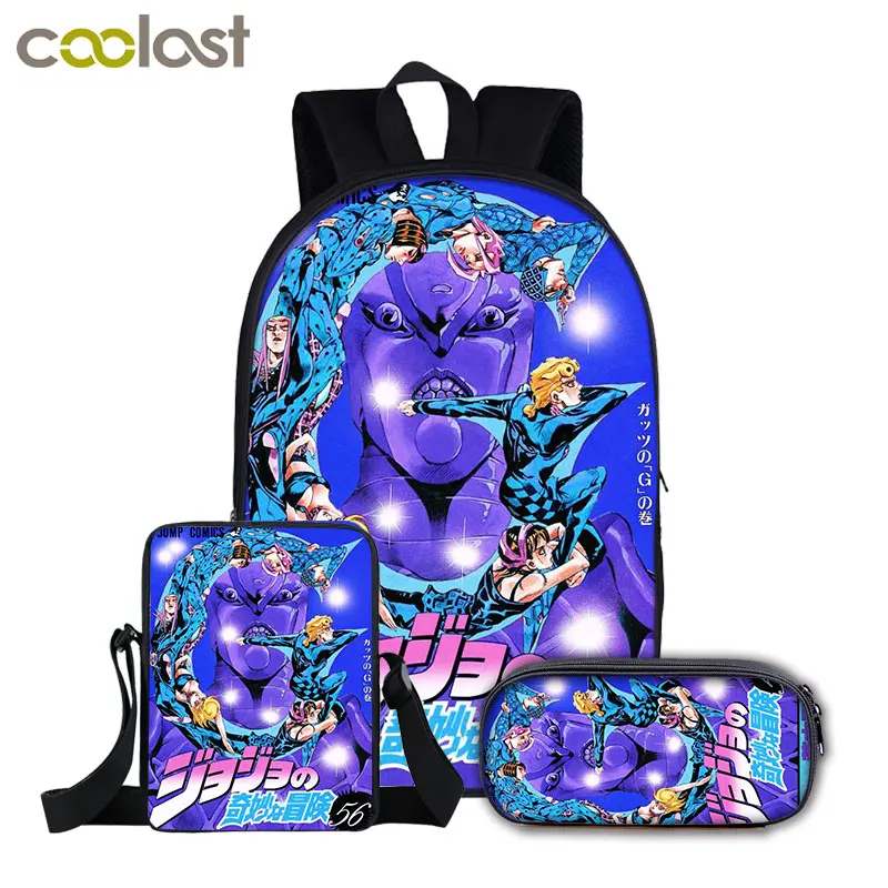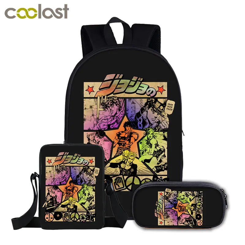 3 шт., водонепроницаемые школьные ранцы с принтом Невероятные приключения Джоджо