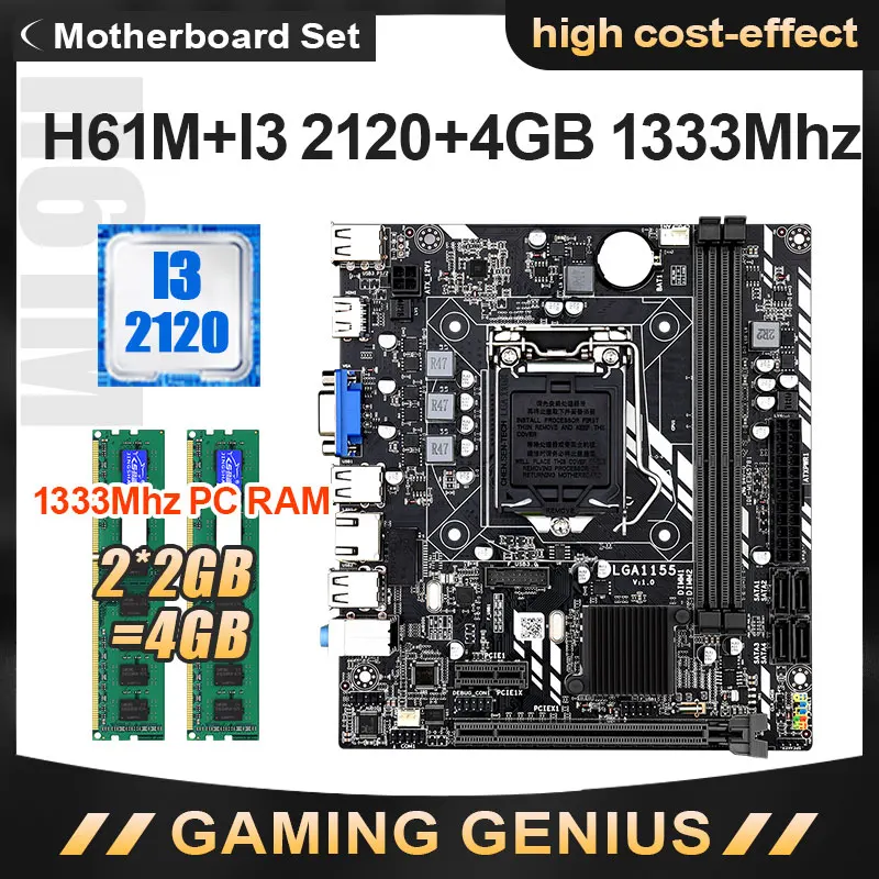 Материнская плата JINGSHA H61M, mATX + Процессор I3-1155 + Оперативная память 2*2 ГБ 4 ГБ 2120 МГц